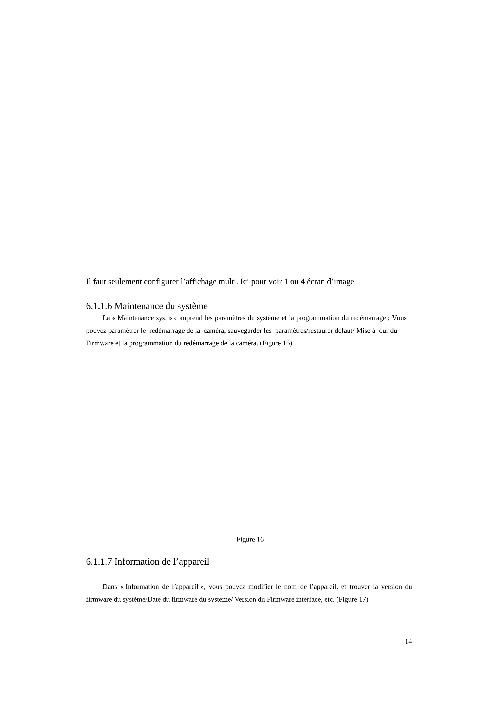 La « Maintenance sys. » comprend les paramètres du système et la programmation du redémarrage ; Vous pouvez paramétrer le redémarrage de la caméra, sauvegarder les paramètres/restaurer défaut/ Mise à jour du Firmware et la programmation du redémarrage de la caméra. (Figure 16) Figure 16