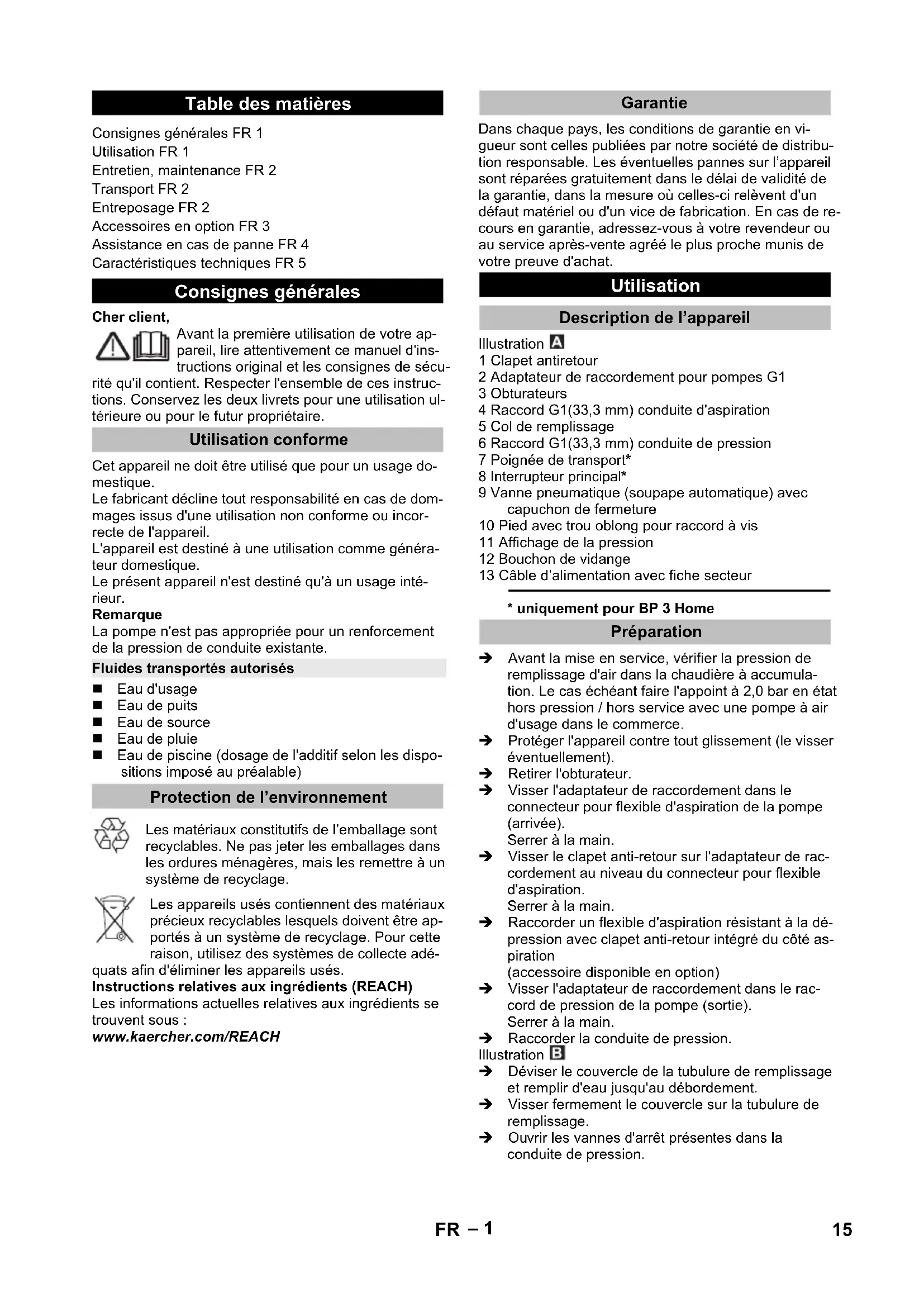 Retrouvez gratuitement la notice de l'appareil BP 5 Home Kärcher au format PDF.