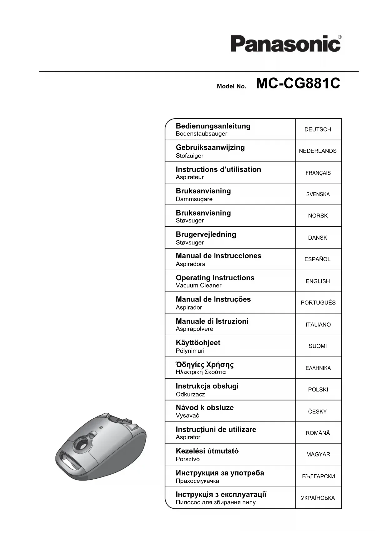 MCCG881C - Aspirateur PANASONIC - Notice d'utilisation et mode d'emploi gratuit