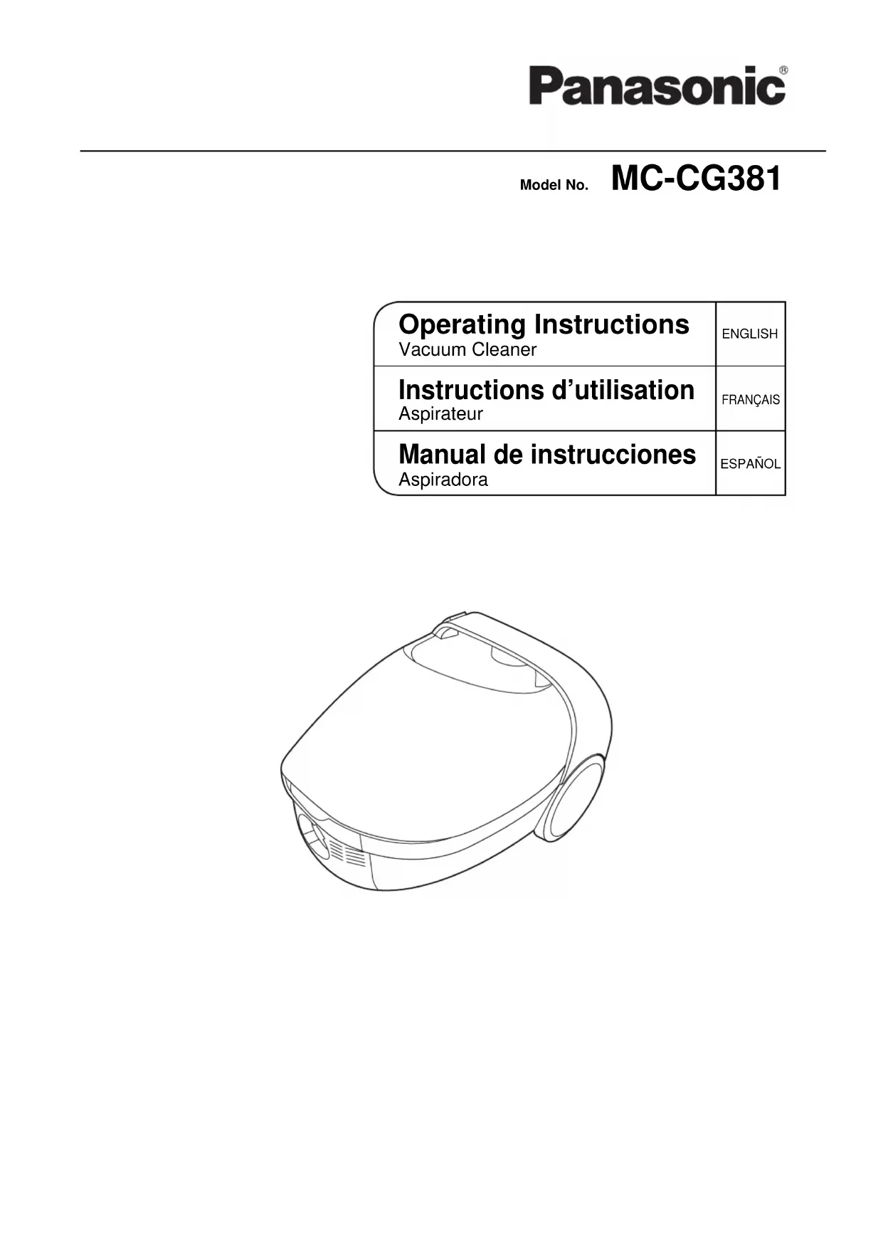 MCCG381 - Aspirateur PANASONIC - Notice d'utilisation et mode d'emploi gratuit