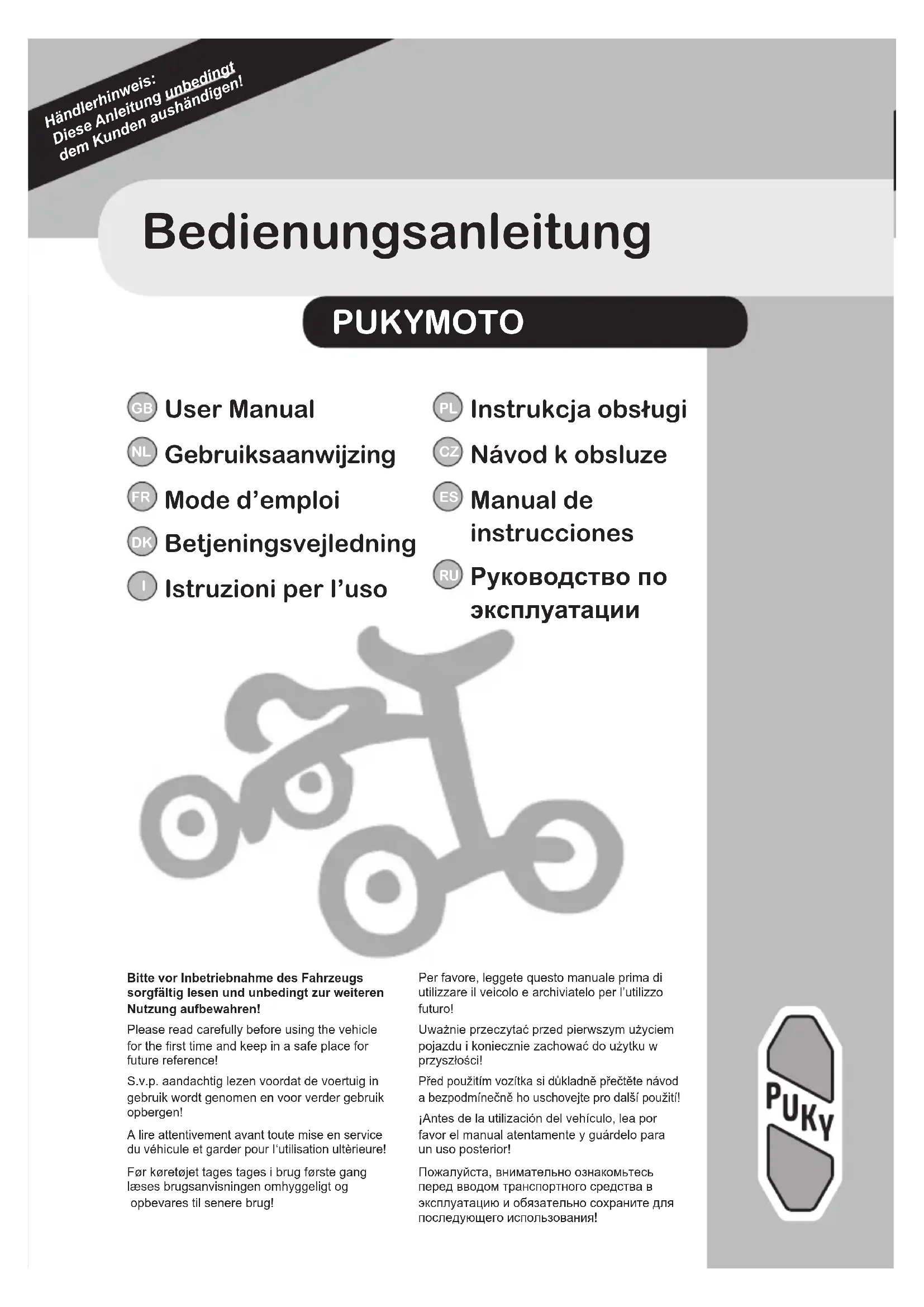 Nous vous félicitons d'avoir acheté ce vehicule PUKY. Vous avez acheté un produit de qualité qui vous apportera beaucoup de plaisir.