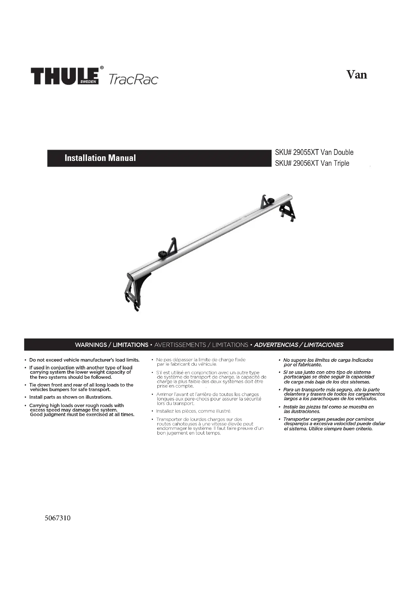 TracRac Van 29056XT - Porte-bagages THULE - Notice d'utilisation et mode d'emploi gratuit