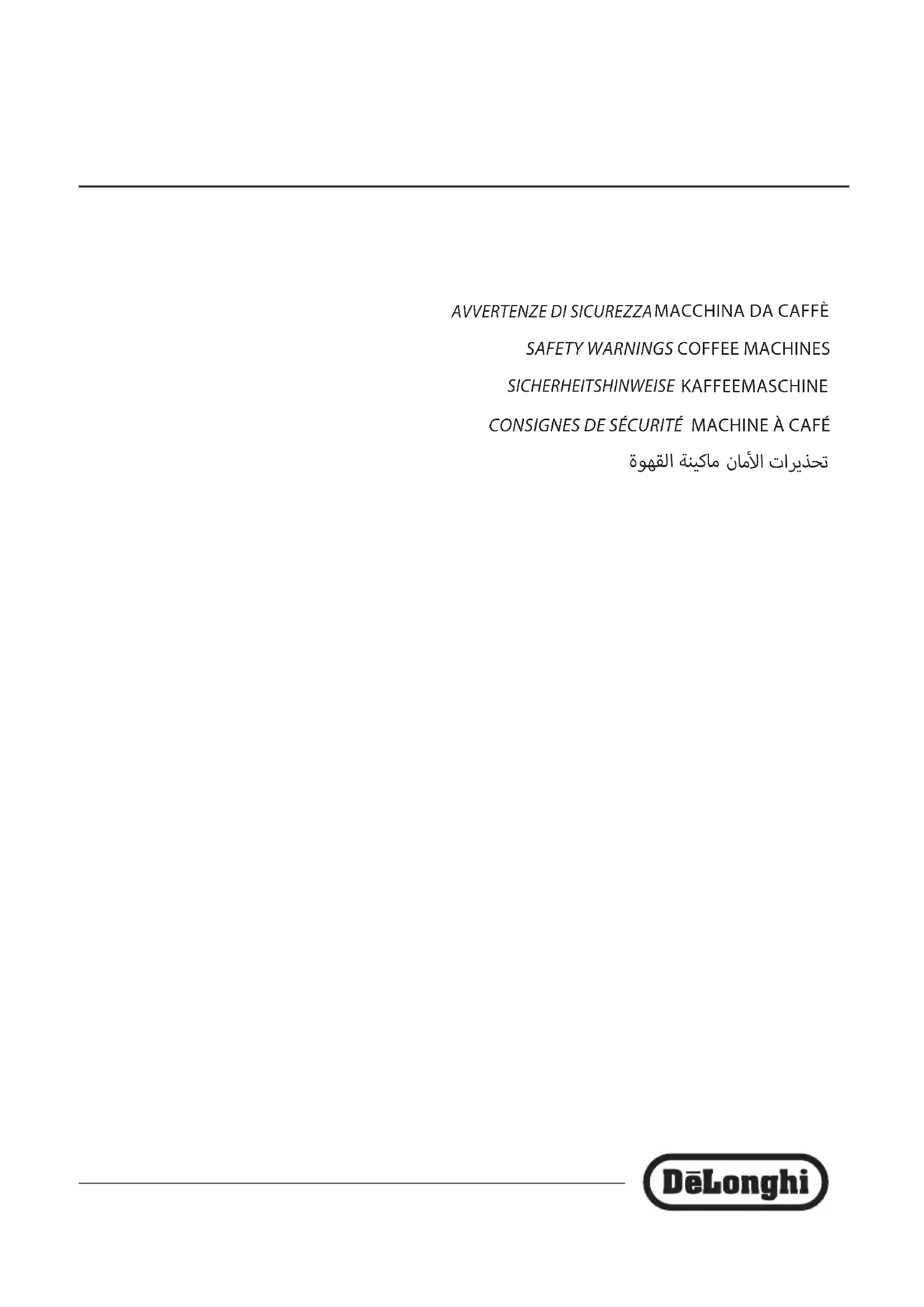 Lire attentivement toutes les instructions avant d’utiliser l’appa- reil. Le non-respect de ces instructions peut causer des blessures et des dommages à l’appareil. Le constructeur ne répond pas des dommages découlant du non-respect de ce mode d’emploi. Nota Bene : Ces consignes de sécurité sont valables pour toutes les machines à café De’Longhi. Conserver soigneusement cette notice ainsi que les ins- tructions fournies avec l’appareil. En cas de cession de l’appareil à d’autres personnes, leur re- mettre également ce mode d’emploi.15 En cas d’incompatibilité entre la prise et la che de l’appareil, faire remplacer par un autre type plus approprié, par un person- nel quali é.