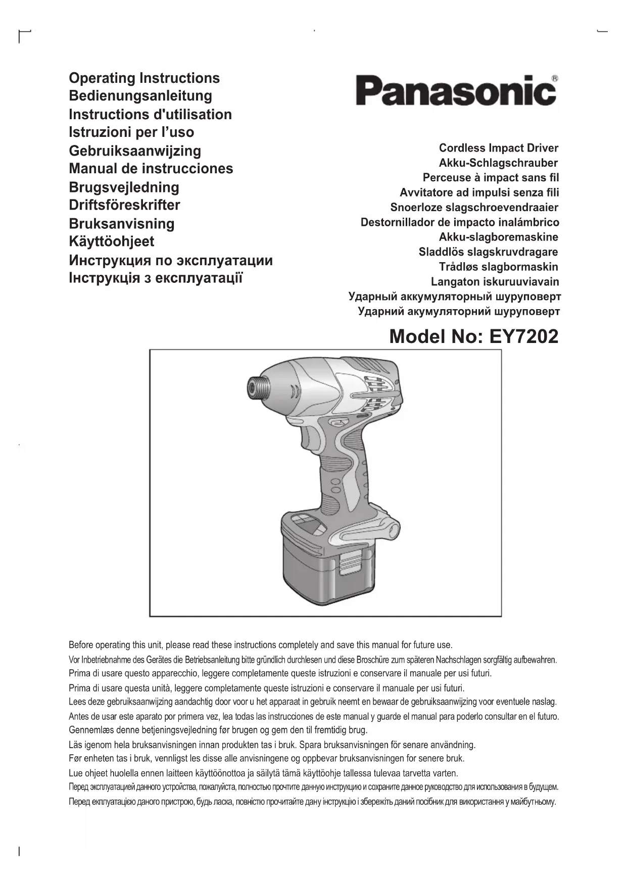Téléchargez la notice de votre Visseuse au format PDF gratuitement ! Retrouvez votre notice EY7202 - PANASONIC et reprennez votre appareil électronique en main. Sur cette page sont publiés tous les documents nécessaires à l'utilisation de votre appareil EY7202 de la marque PANASONIC.
