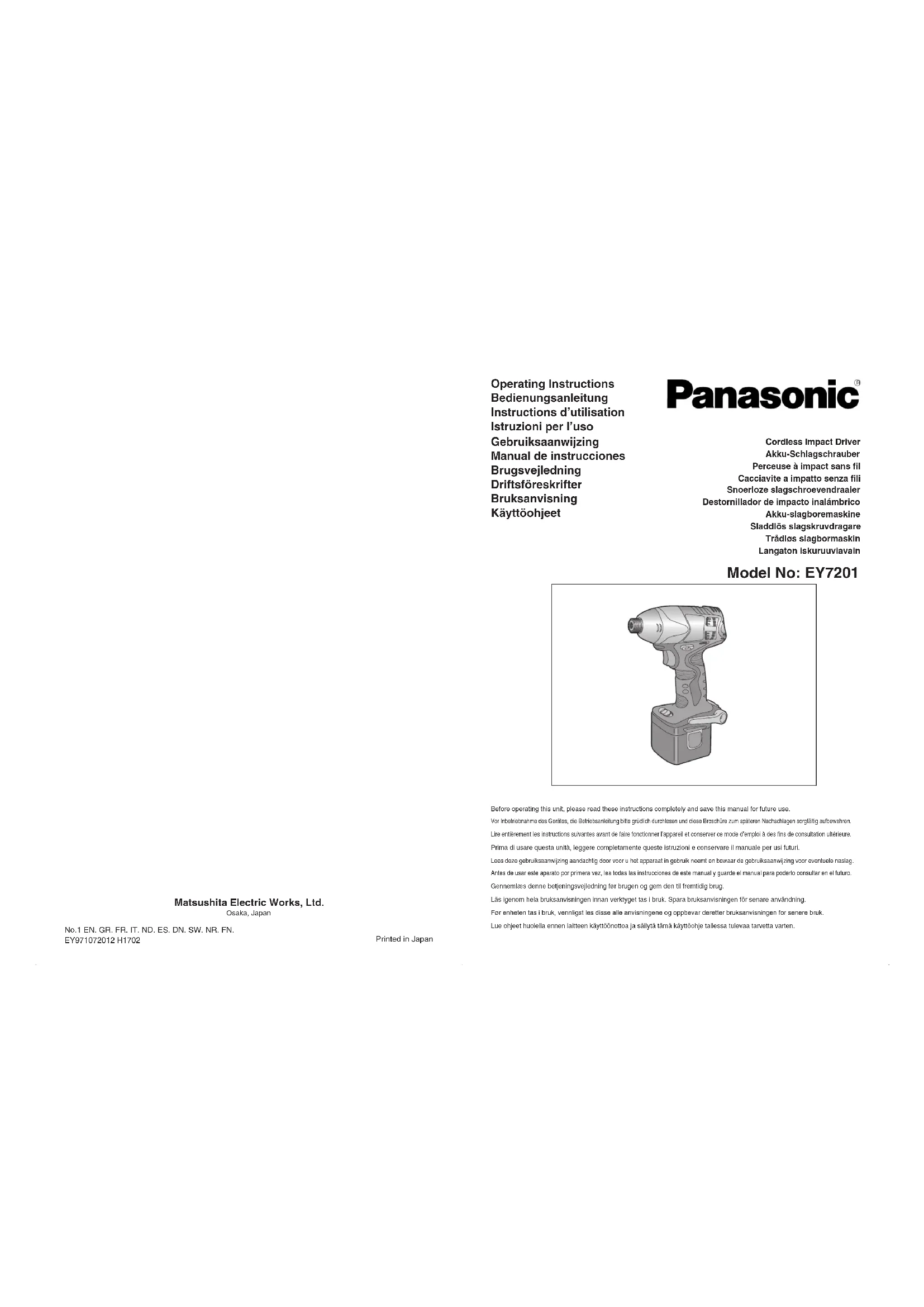 EY7201 - Visseuse PANASONIC - Notice d'utilisation et mode d'emploi gratuit