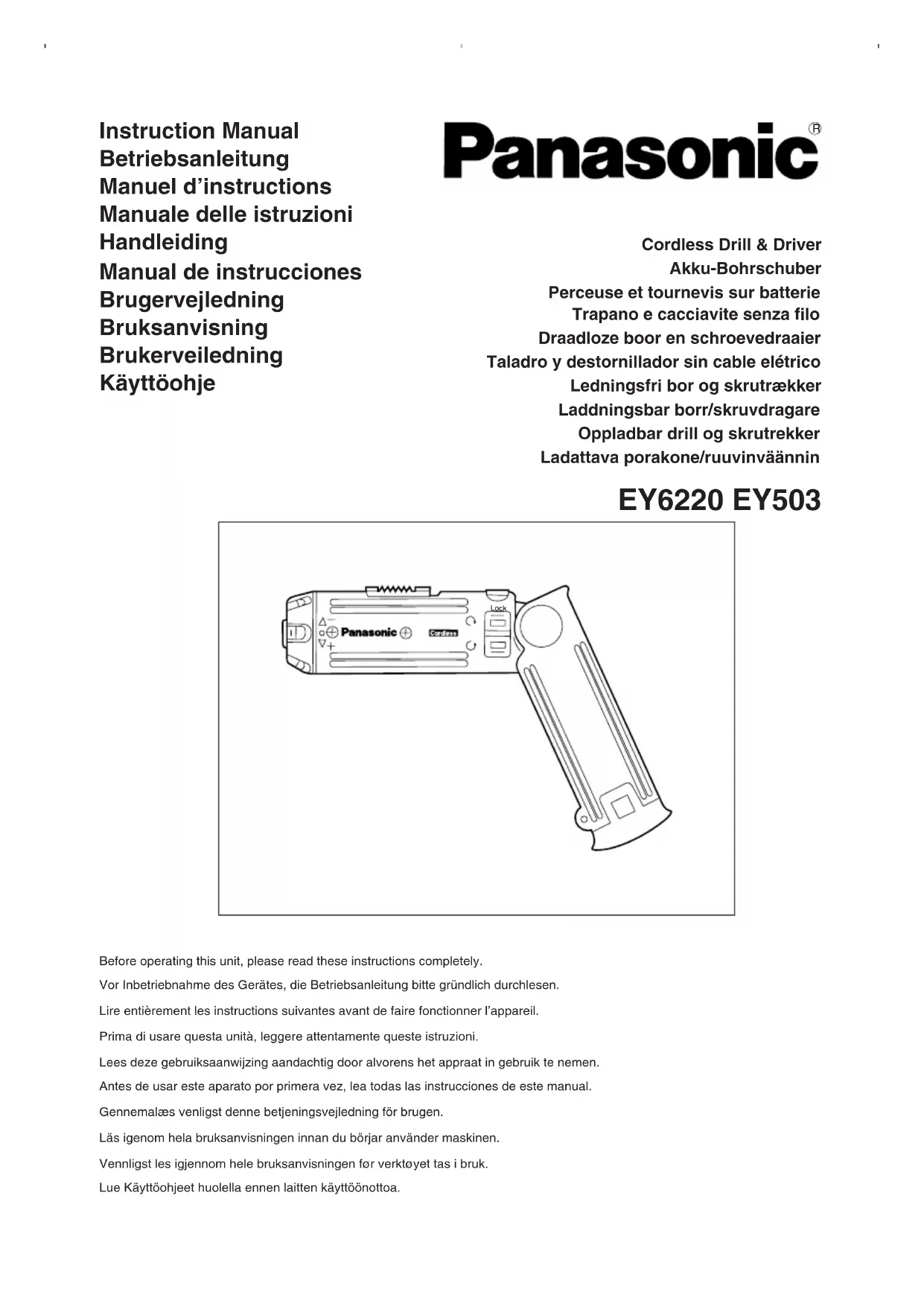 Téléchargez la notice de votre Visseuse au format PDF gratuitement ! Retrouvez votre notice EY503 - PANASONIC et reprennez votre appareil électronique en main. Sur cette page sont publiés tous les documents nécessaires à l'utilisation de votre appareil EY503 de la marque PANASONIC.