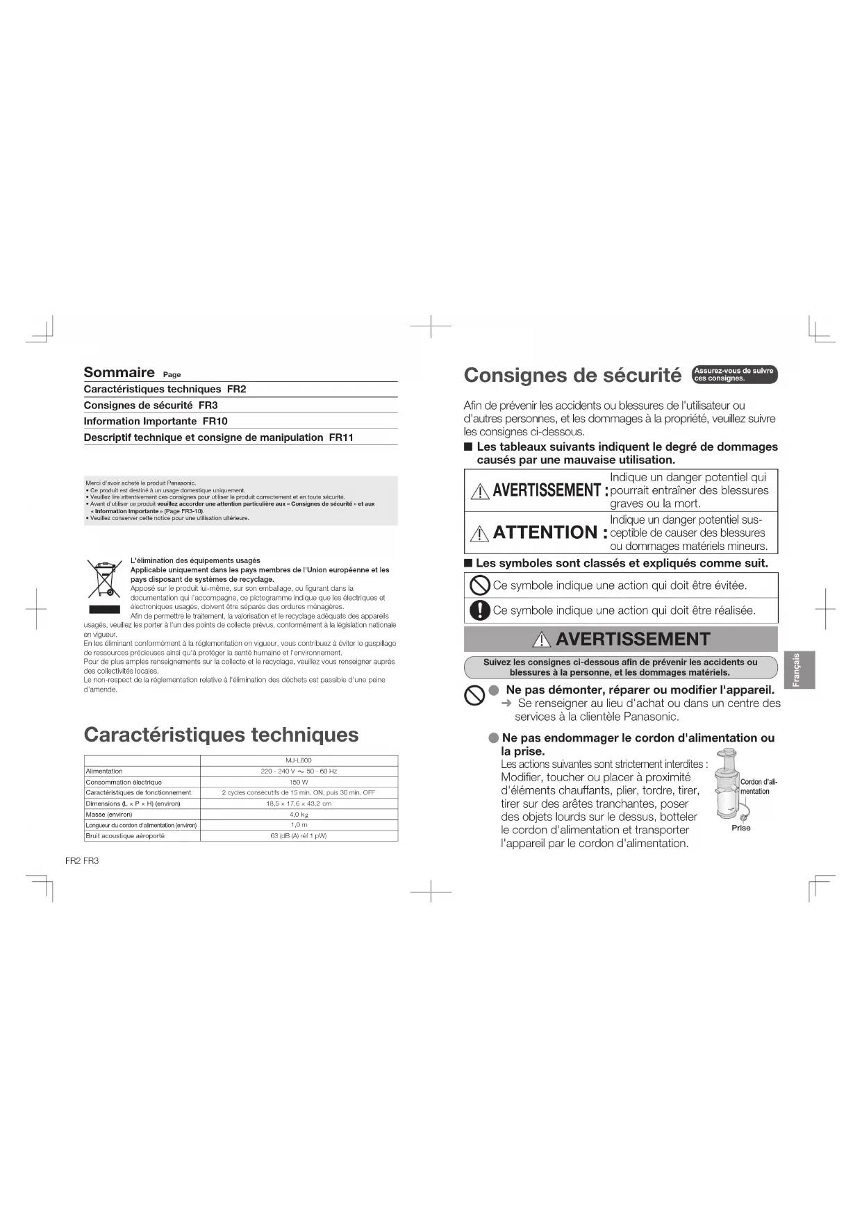 MJL600 - Extracteur de jus PANASONIC - Notice d'utilisation et mode d'emploi gratuit