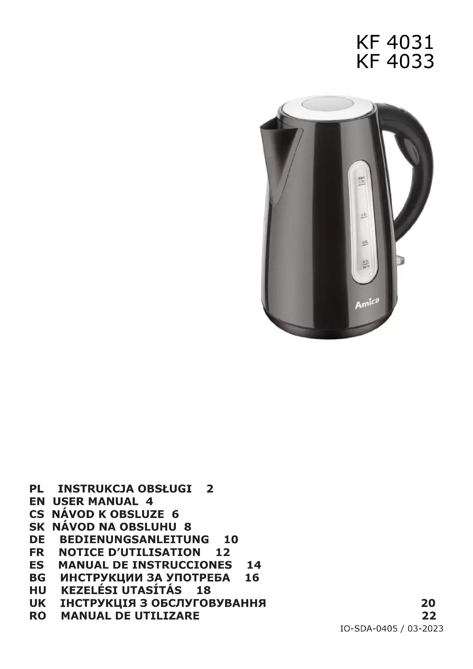 KF4031 - Bouilloire AMICA - Notice d'utilisation et mode d'emploi gratuit