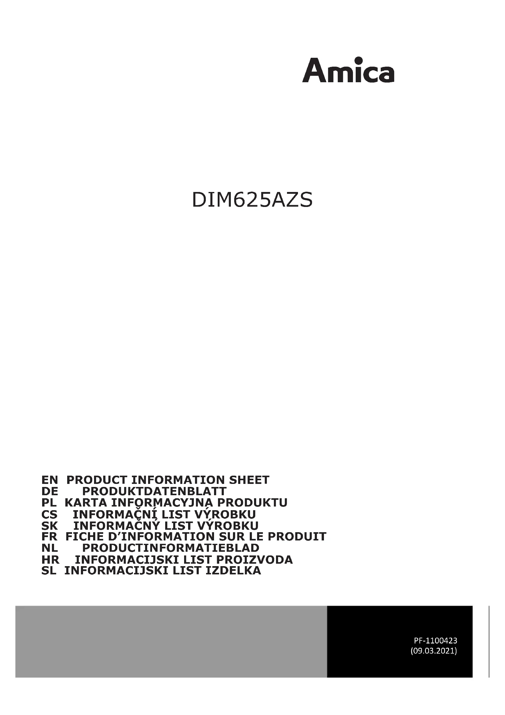 Retrouvez gratuitement la notice de l'appareil DIM625AZS AMICA au format PDF.