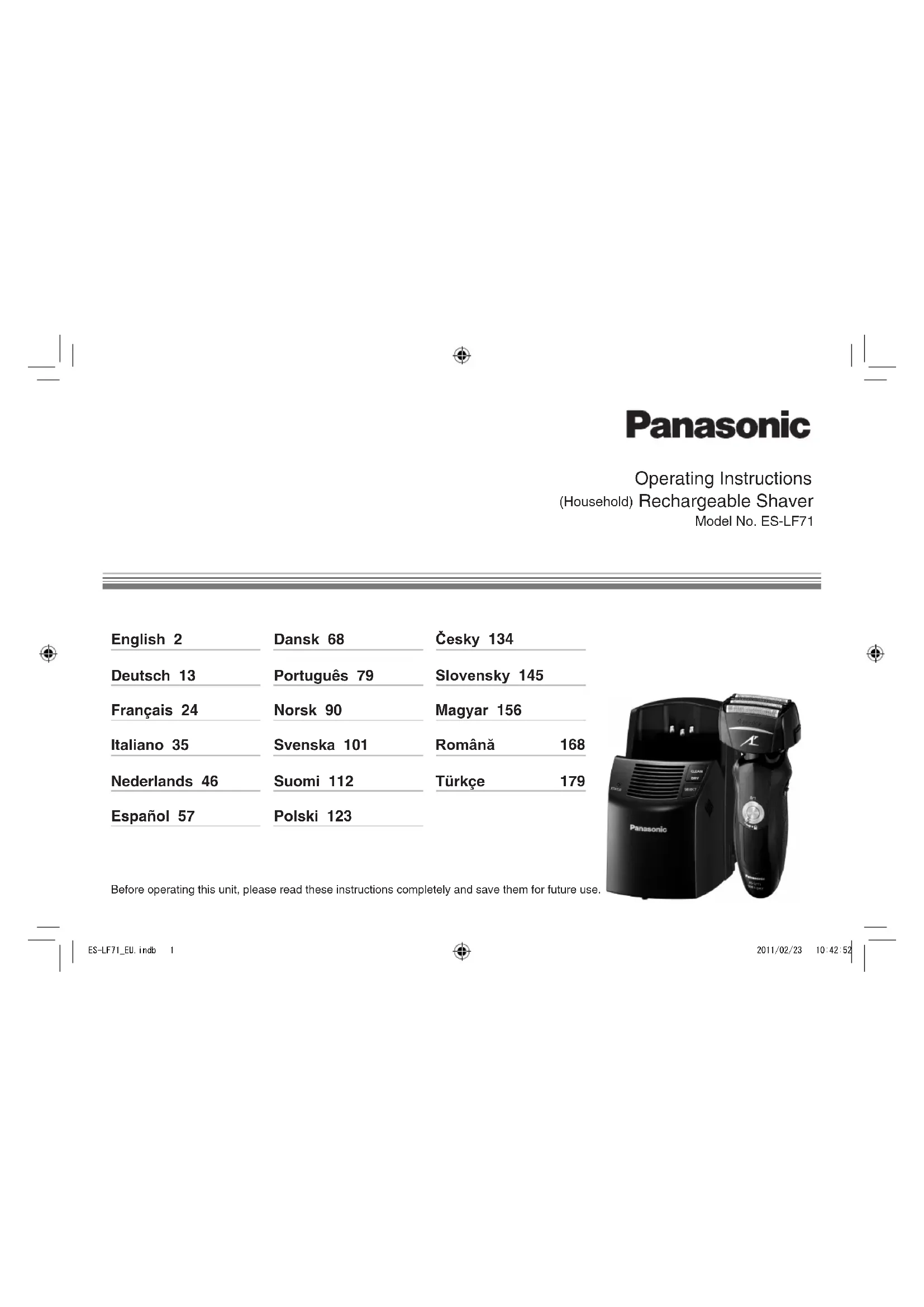 ESLF71 - Rasoir PANASONIC - Notice d'utilisation et mode d'emploi gratuit
