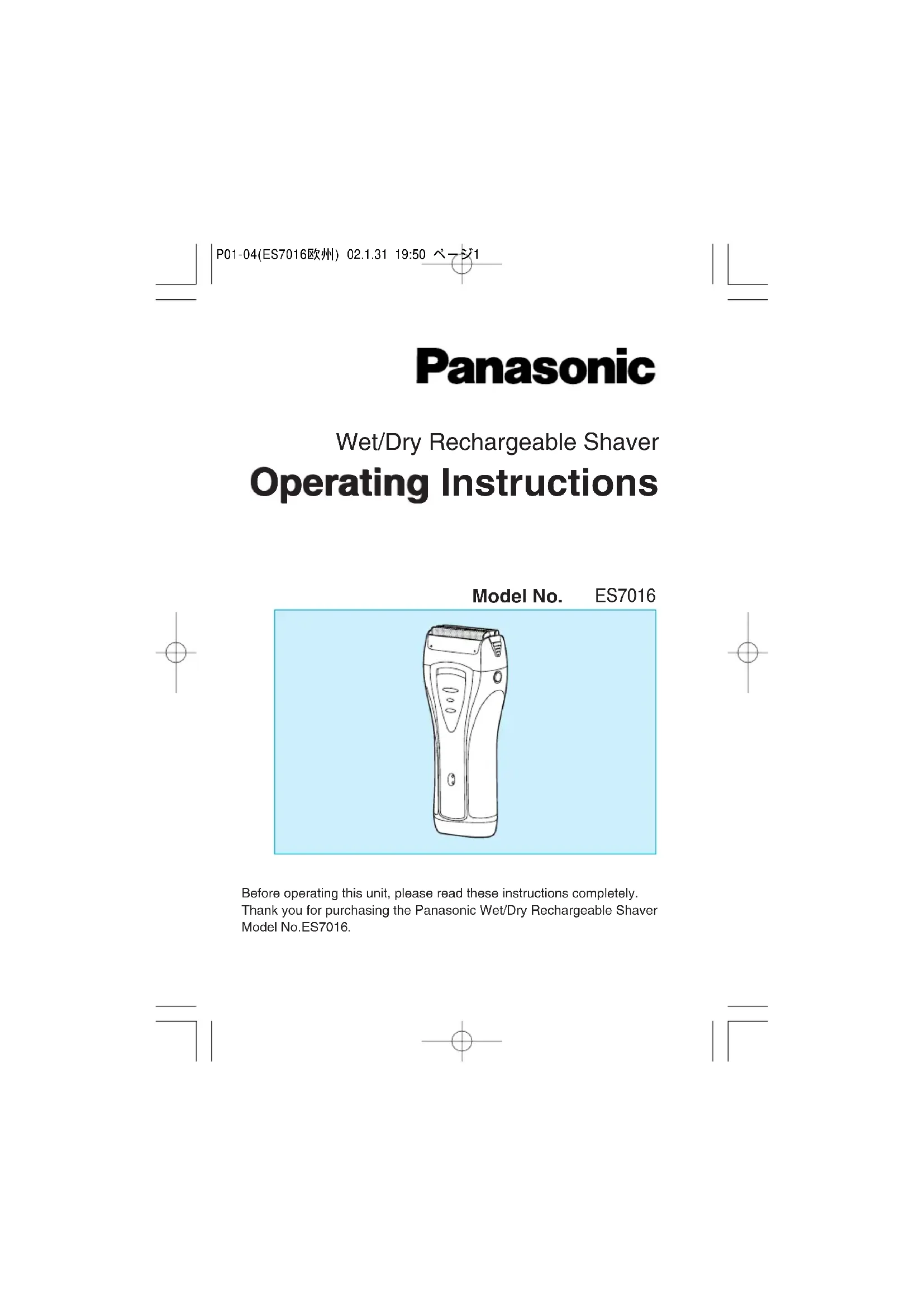 Retrouvez gratuitement la notice de l'appareil ES7016 PANASONIC au format PDF.