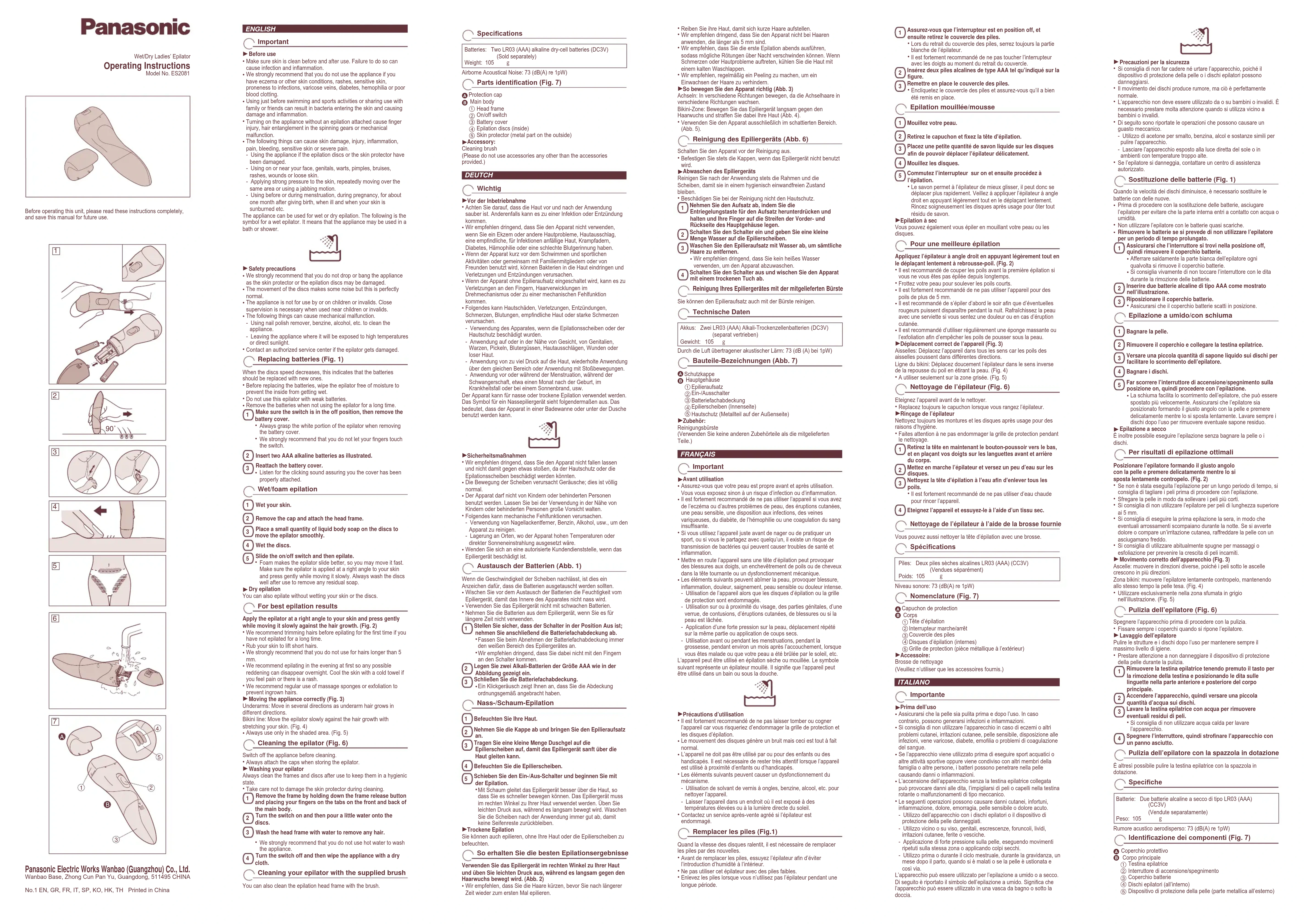ES2081 - Epilateur PANASONIC - Notice d'utilisation et mode d'emploi gratuit