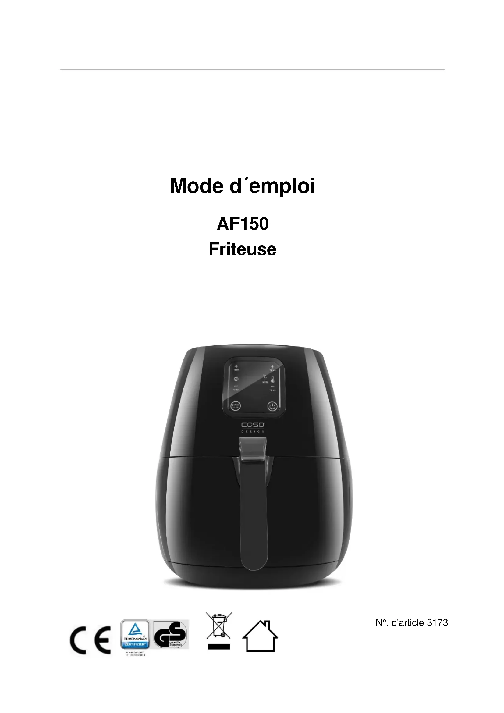 Retrouvez gratuitement la notice de l'appareil AF150 CASO au format PDF.