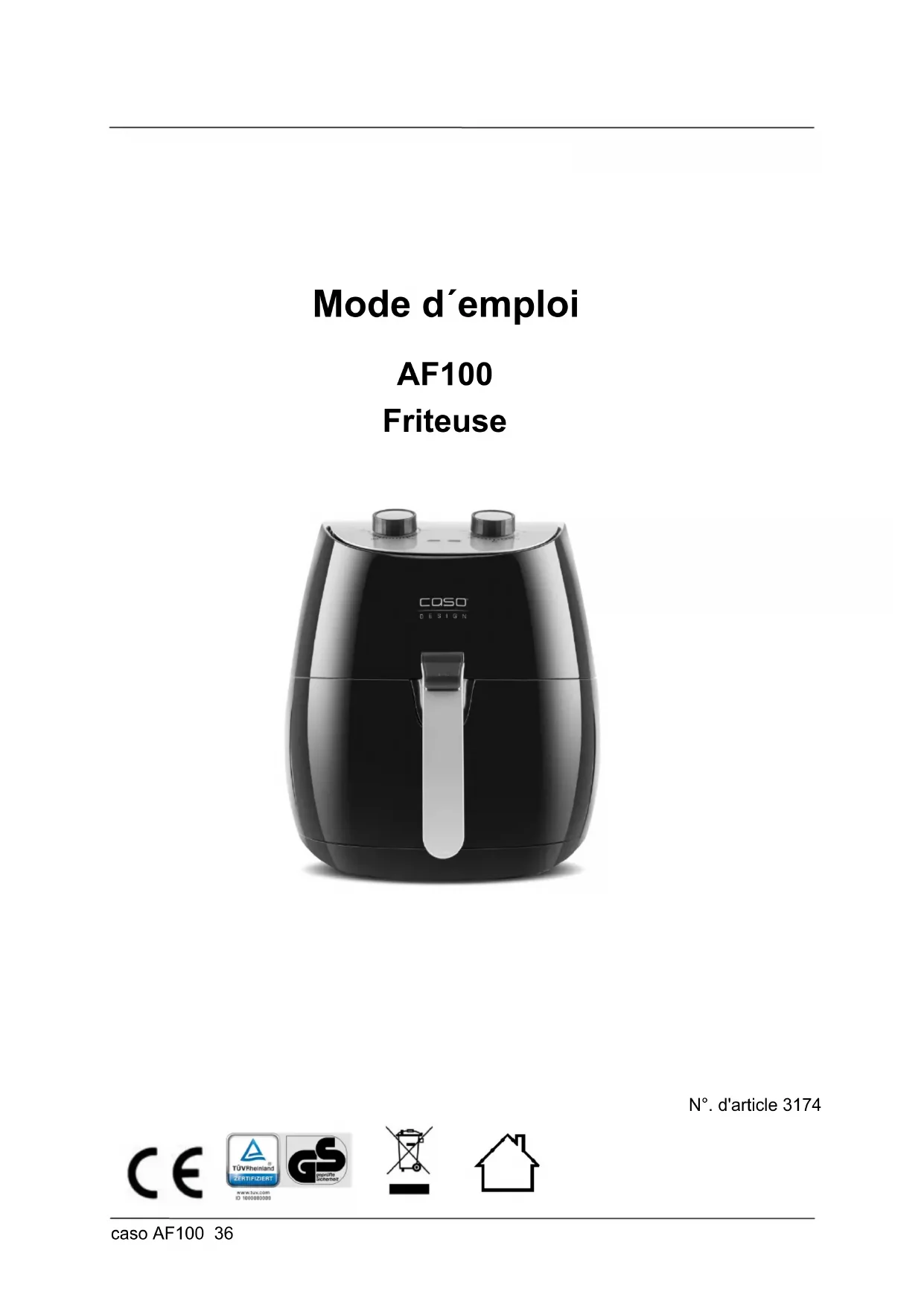 AF100 - Friteuse CASO - Notice d'utilisation et mode d'emploi gratuit