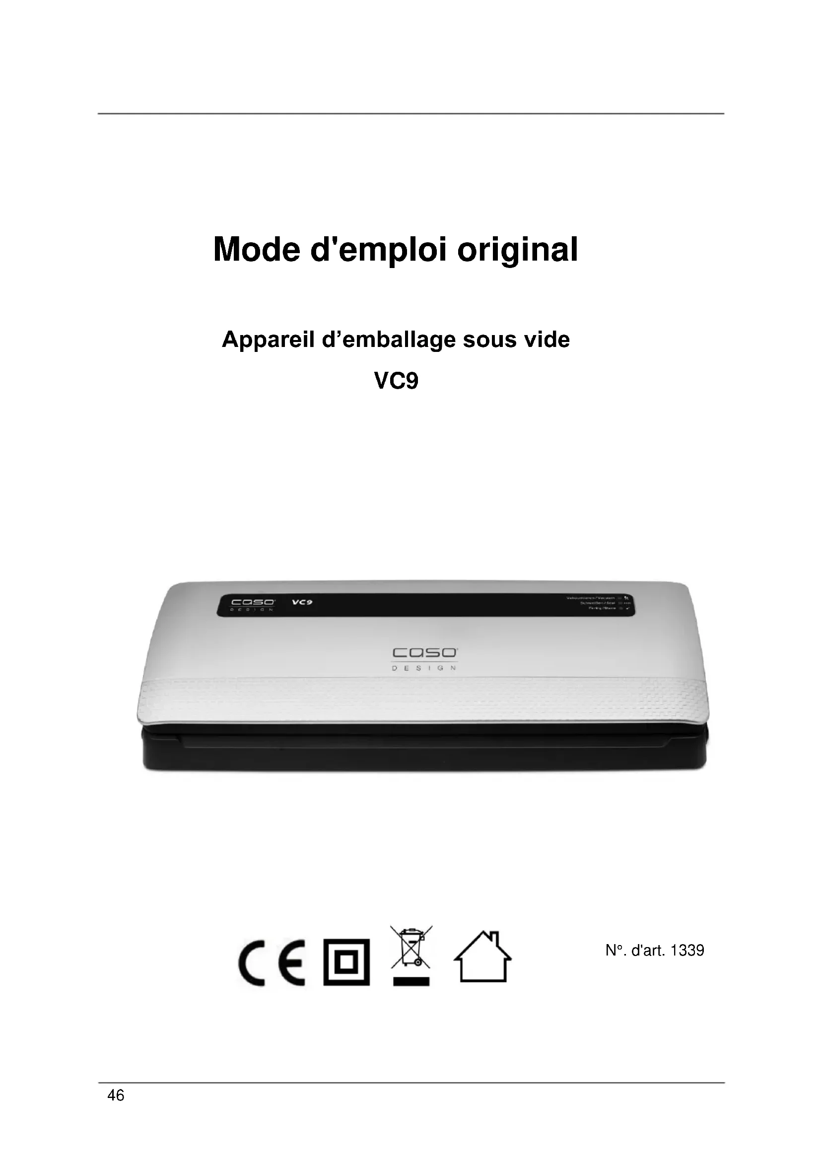 Retrouvez gratuitement la notice de l'appareil VC9 CASO au format PDF.
