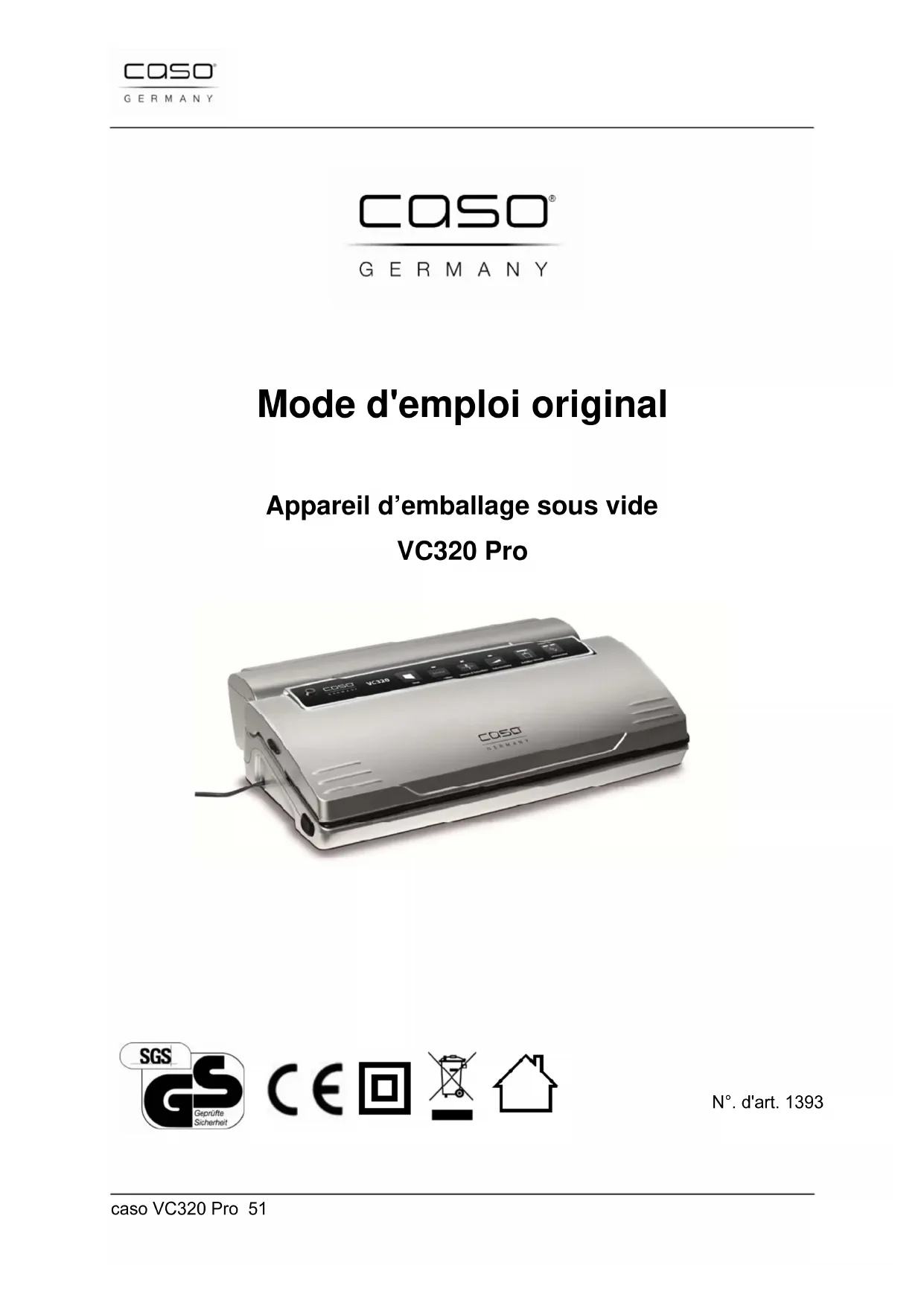 VC320 Pro - Appareils à emballage sous vide CASO - Notice d'utilisation et mode d'emploi gratuit
