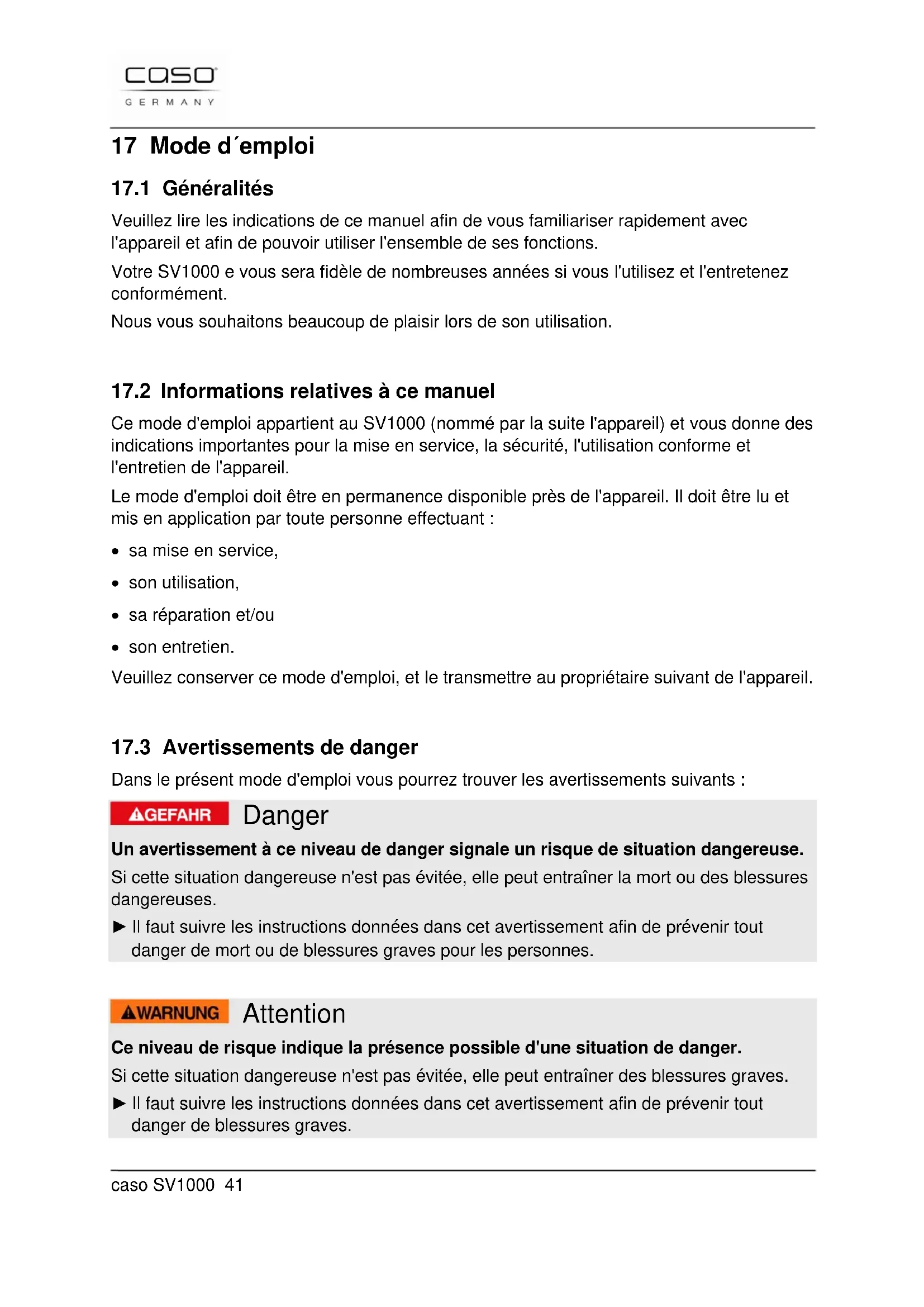 SousVide Center SV1000 - Appareils à emballage sous vide CASO - Notice d'utilisation et mode d'emploi gratuit
