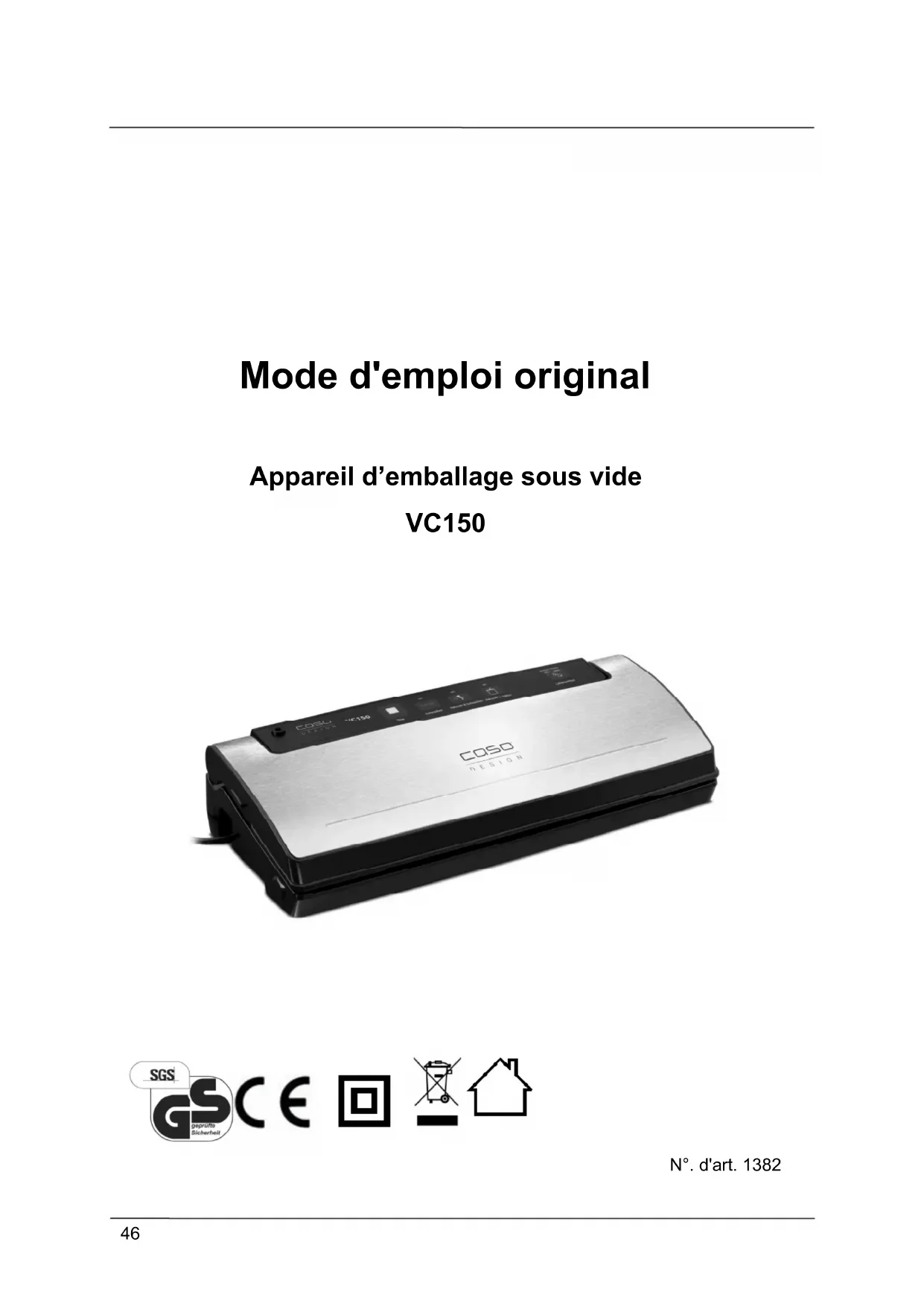 Retrouvez gratuitement la notice de l'appareil VC150 CASO au format PDF.