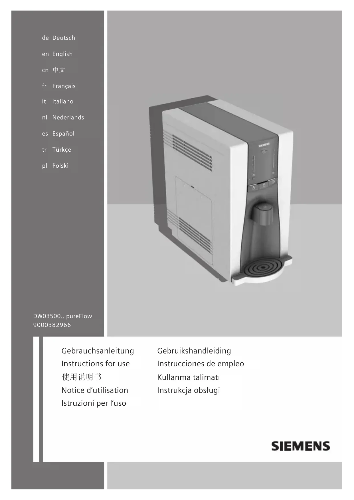 Retrouvez gratuitement la notice de l'appareil pureFlow DW03500 SIEMENS au format PDF.