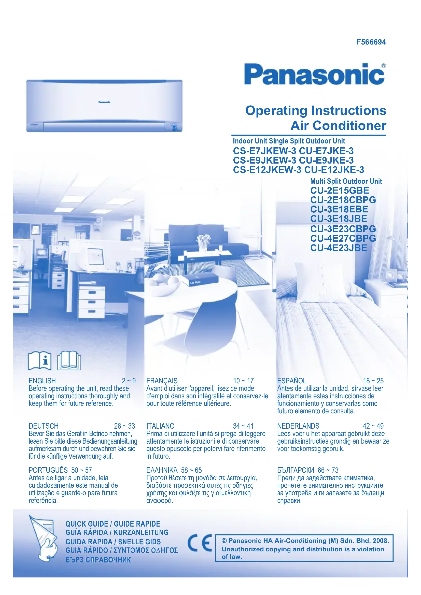 CUE7JKE3 - Climatisation PANASONIC - Notice d'utilisation et mode d'emploi gratuit