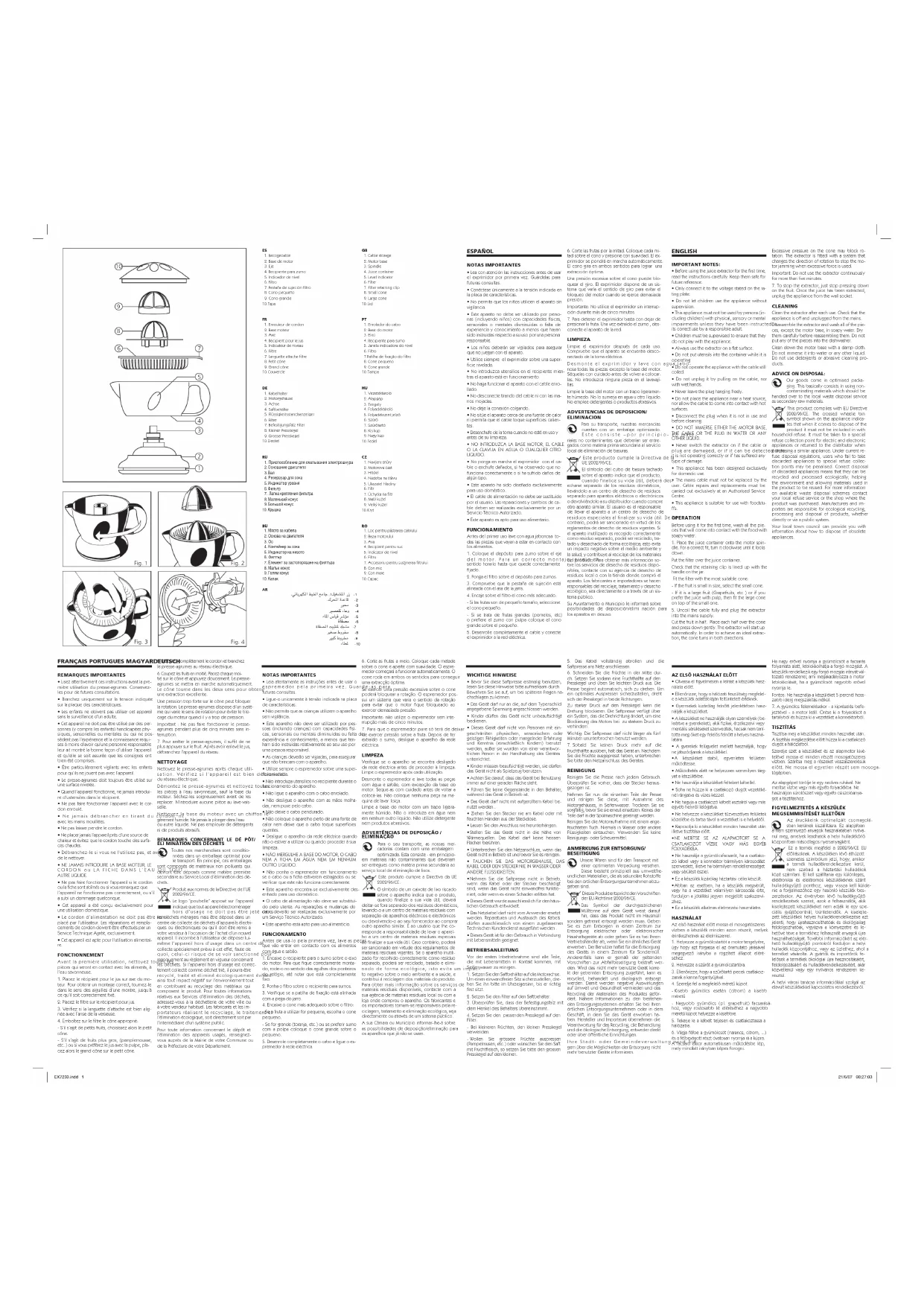 Retrouvez gratuitement la notice de l'appareil Citraris EX7233 UFESA au format PDF.