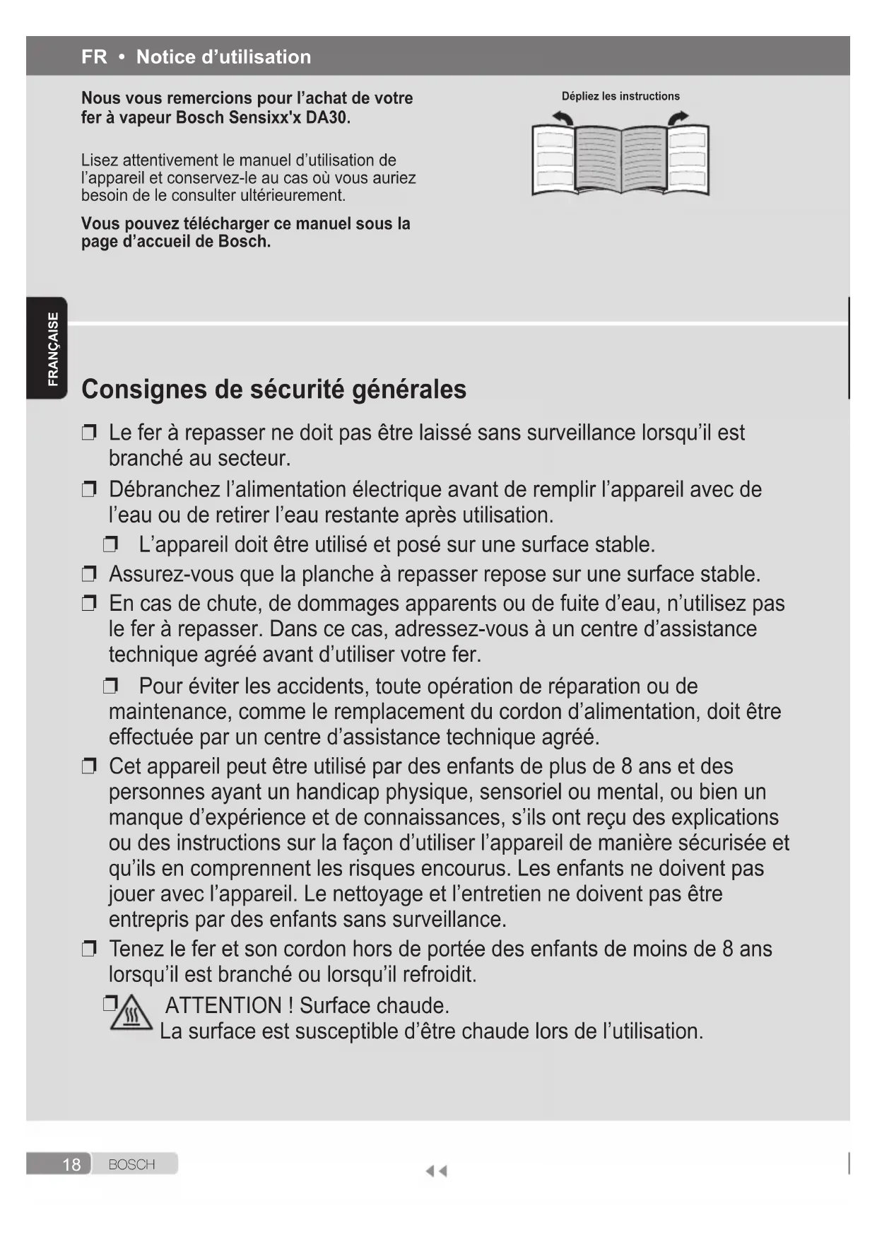 Sensixx'x DA30 TDA3024110 - Fer à repasser BOSCH - Notice d'utilisation et mode d'emploi gratuit