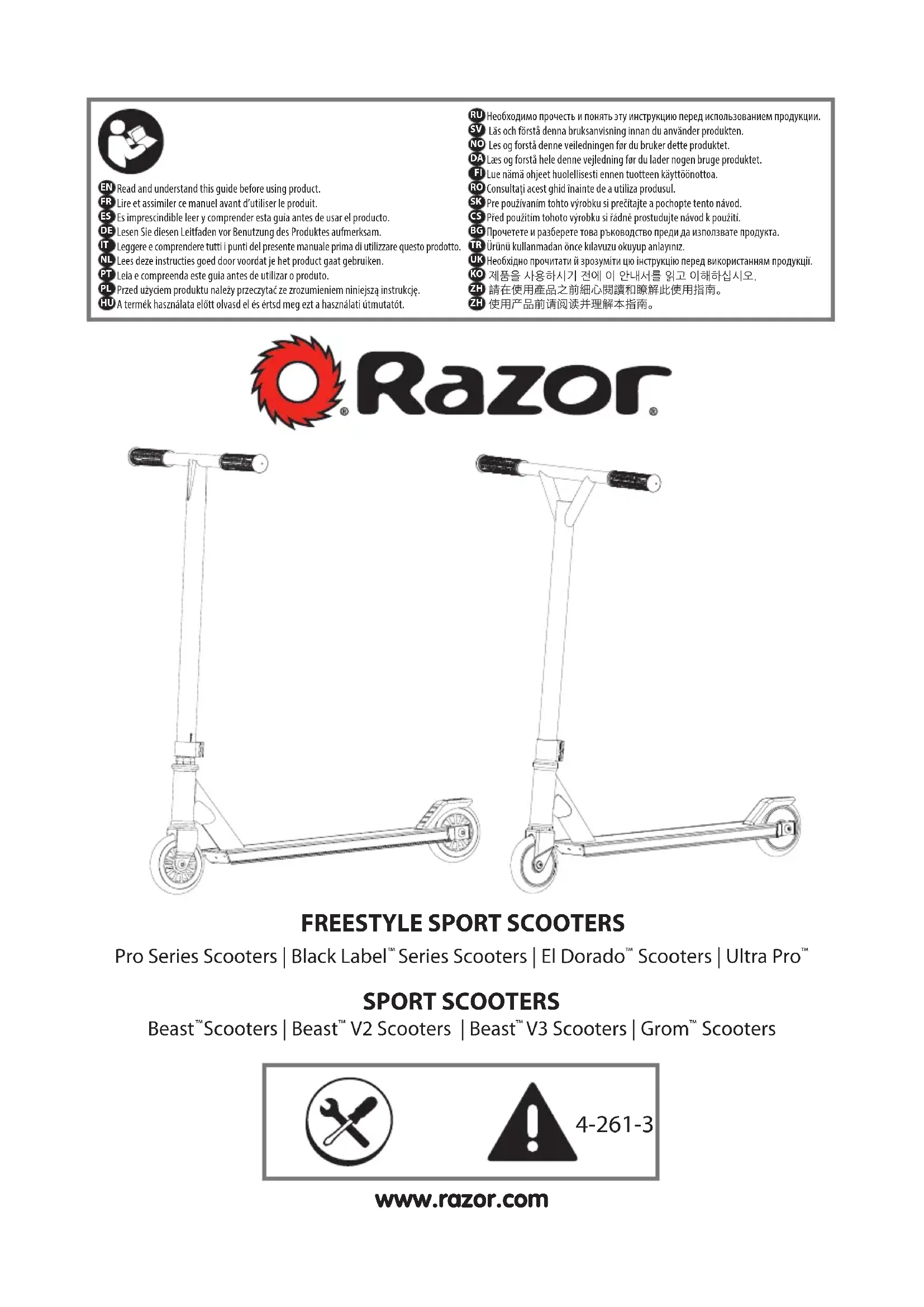 - Utiliser uniquement des pièces de rechange homologuées Razor. Garantie limitée