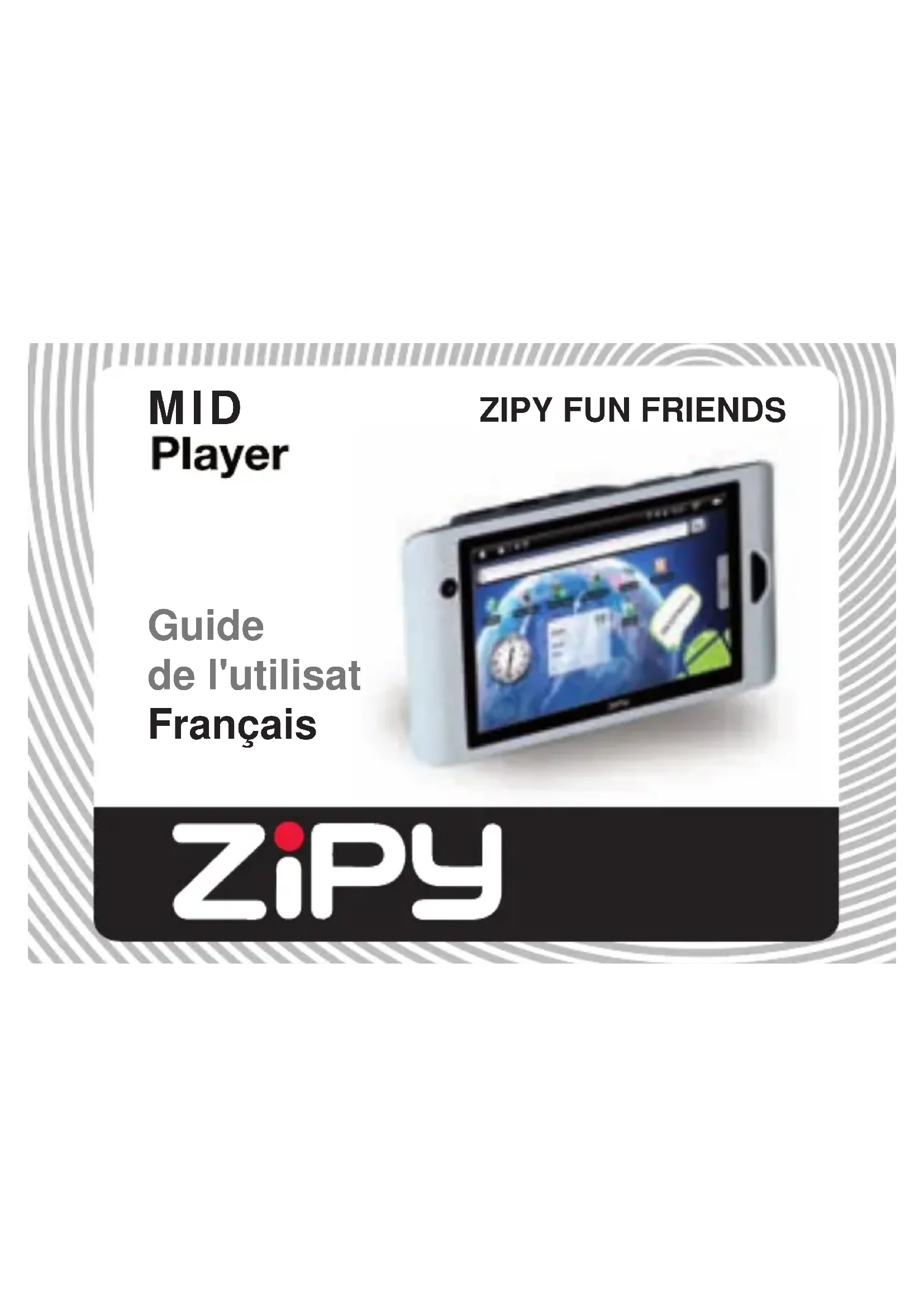 être débranché du réseau électrique. OBSERVATIONS: Merci de bien vouloir recharger le dispositif MID avant la première utilisation. Votre PC doit être allumé lorsque vous connectez le reproducteur MID pour qu’il puisse se charger. Ne surchargez pas le dispositif MID, cela pourrait réduire la durée de vie de la batterie.ZIPY FUN FRENDS