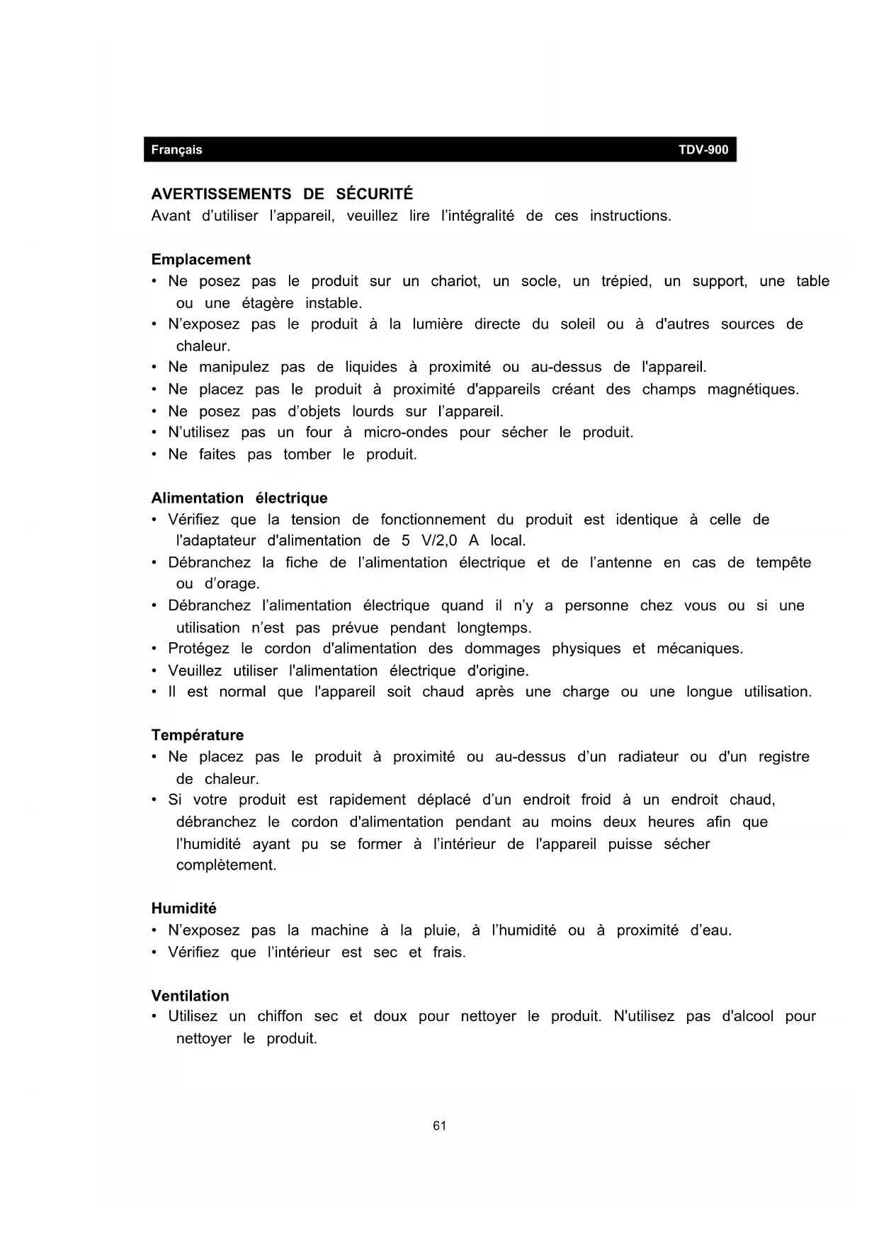 MODE D'EMPLOI TDV900 LENCO