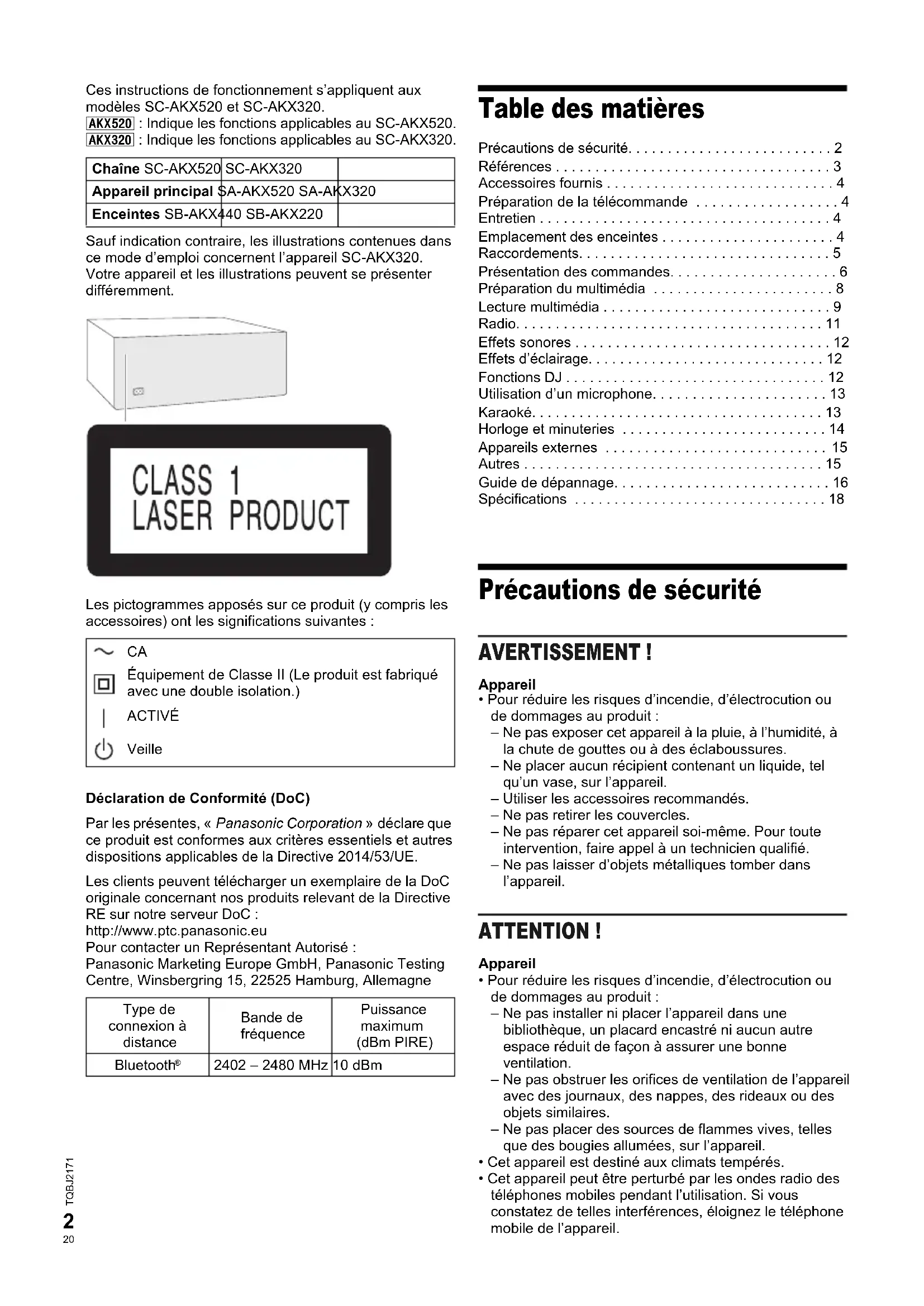 Ces instructions de fonctionnement s'appliquent aux modèles SC-AKX520 et SC-AKX320.