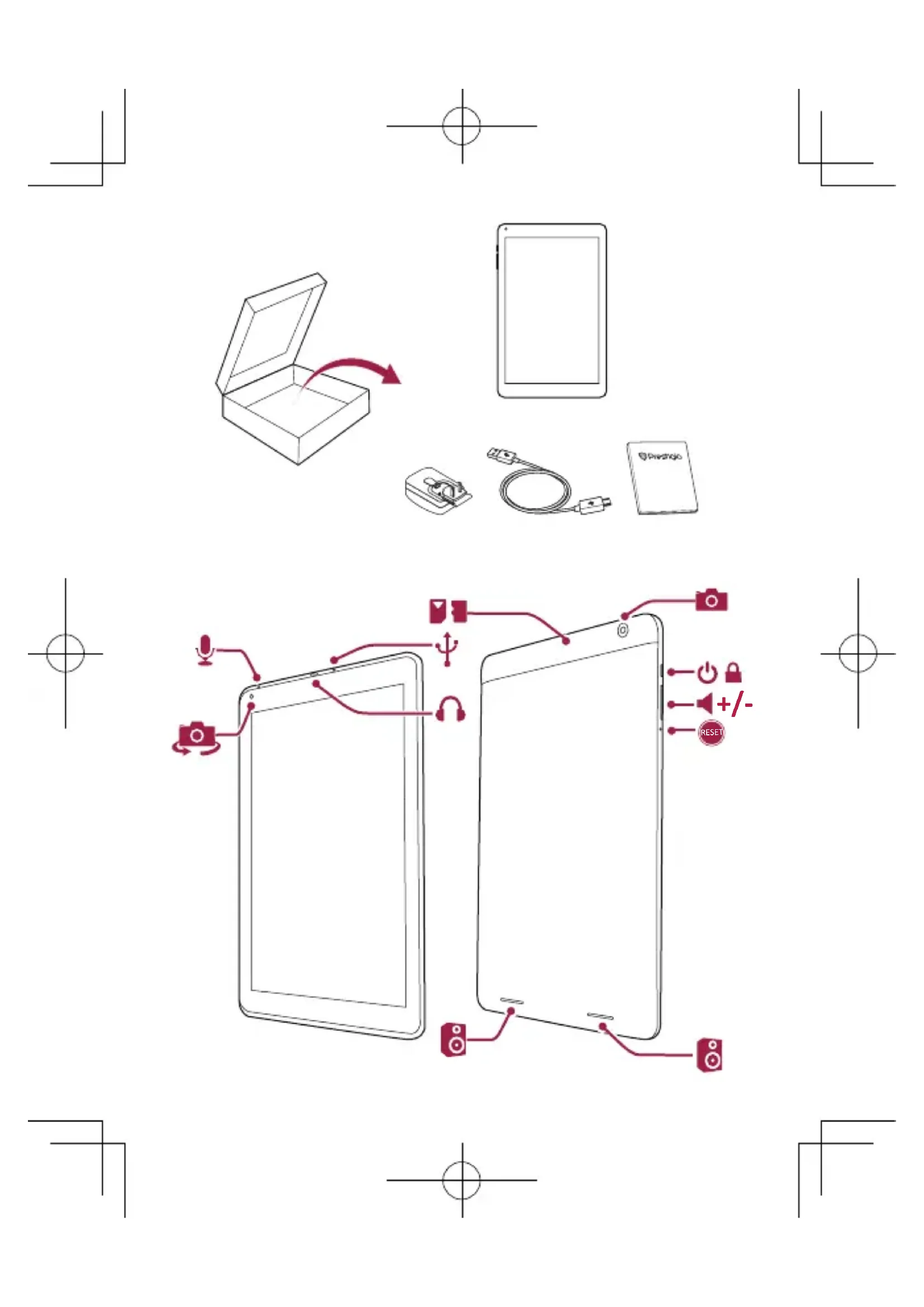 Effectuer un appel Appuyez sur pour ouvrir le pavé numérique et entrez le numéro directement, puis appuyez sur . Ou appuyez sur le numéro voulu à partir du journal d'appels ou des contacts. Écran d'accueil L'écran d'accueil peut avoir plusieurs panneaux. Pour afficher les applications et widgets des autres panneaux, balayez l'écran vers la gauche ou la droite. Utiliser la page de notifications Balayez l'écran à partir du coin supérieur gauche pour ouvrir le panneau des notifications. Lorsque vous recevez une nouvelle notification, vous pouvez ouvrir la page pour voir quel événement ou nouvelle information vous venez de recevoir. Utilisation du paramétrage rapide Balayez l'écran à partir du coin supérieur droit pour ouvrir l'onglet de paramétrage rapide. Il vous permet de facilement activer ou désactiver le mode Avion, la Wi-Fi et d'autres fonctions. Il fournit également un raccourci pour régler la luminosité, verrouiller l'orientation automatique de l'écran et accéder aux paramètres système. Gérer vos applications Ouvrir une application Sur l'écran d'accueil ou le menu liste, appuyez sur l'icône d'une application pour l'ouvrir.FR Guide de démarrage rapide Prestigio MultiPad Ajouter une icône d'application sur l'écran d'accueil Dans le menu liste, appuyez sur l'application, maintenez-la enfoncée et faites la glisser au bon endroit sur l'écran Accueil. Supprimer un application Appuyez sur l'application, maintenez-la enfoncée et faites la glisser vers le haut. Relâchez l'icône dès qu'elle devient rouge. Créer un dossier Rassemblez plusieurs icônes d'applications en les glissant les unes sur les autres. Car les produits Prestigio sont constamment mis à jour et améliorés, le logiciel de votre appareil peut avoir une apparence légèrement différente ou avoir des fonctionnalités modifiées par rapport à celles qui sont présentées dans ce Guide de démarrage rapide. Prestigio déclare que ce Multipad fait face aux exigences de base et dʼautres règles donées par la directive de lʼUnion Européenne 1999/5/ES. La version complète de la déclaration est disponible sur www.prestigio.com/certificates. Pour éviter tout risque de dommages auditifs ne pas écouter pendant une longue période avec un volume élevé. Pour obtenir les informations sur le DAS (Débit d’Absorption Spécifique) veuillez consulter la page : www.prestigio.com/catalogue/MultiPads/MultiPad_Muze_5001_3GGR Οδηγός γρήγορης εκκίνησης Prestigio MultiPad Συγχαρητήρια για την αγορά σας και καλώς ήρθατε στην Prestigio. Απολαύστε το Prestigio MultiPad σας, με την τελευταία έκδοση Android 4.4 KitKat. Μπορείτε να επισκεφθείτε τη διεύθυνση www.prestigio.com/support για λήψη του εγχειριδίου πλήρους μεγέθους. Συνδεθείτε στο Διαδίκτυο Συνδεθείτε στο Διαδίκτυο είτε μέσω του δικτύου Wi-Fi είτε μέσω της σύνδεσης δεδομένων της κινητής τηλεφωνίας σας. Σύνδεση σε ασύρματο δίκτυο