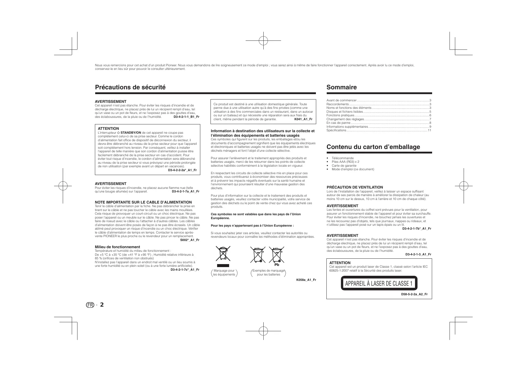 Nous vous remercions pour cet achat d’un produit Pioneer. Nous vous demandons de lire soigneusement ce mode d’emploi ; vous serez ainsi à même de faire fonctionner l’appareil correctement. Après avoir lu ce mode d’emploi, conservez-le en lieu sûr pour pouvoir le consulter ultérieurement.
