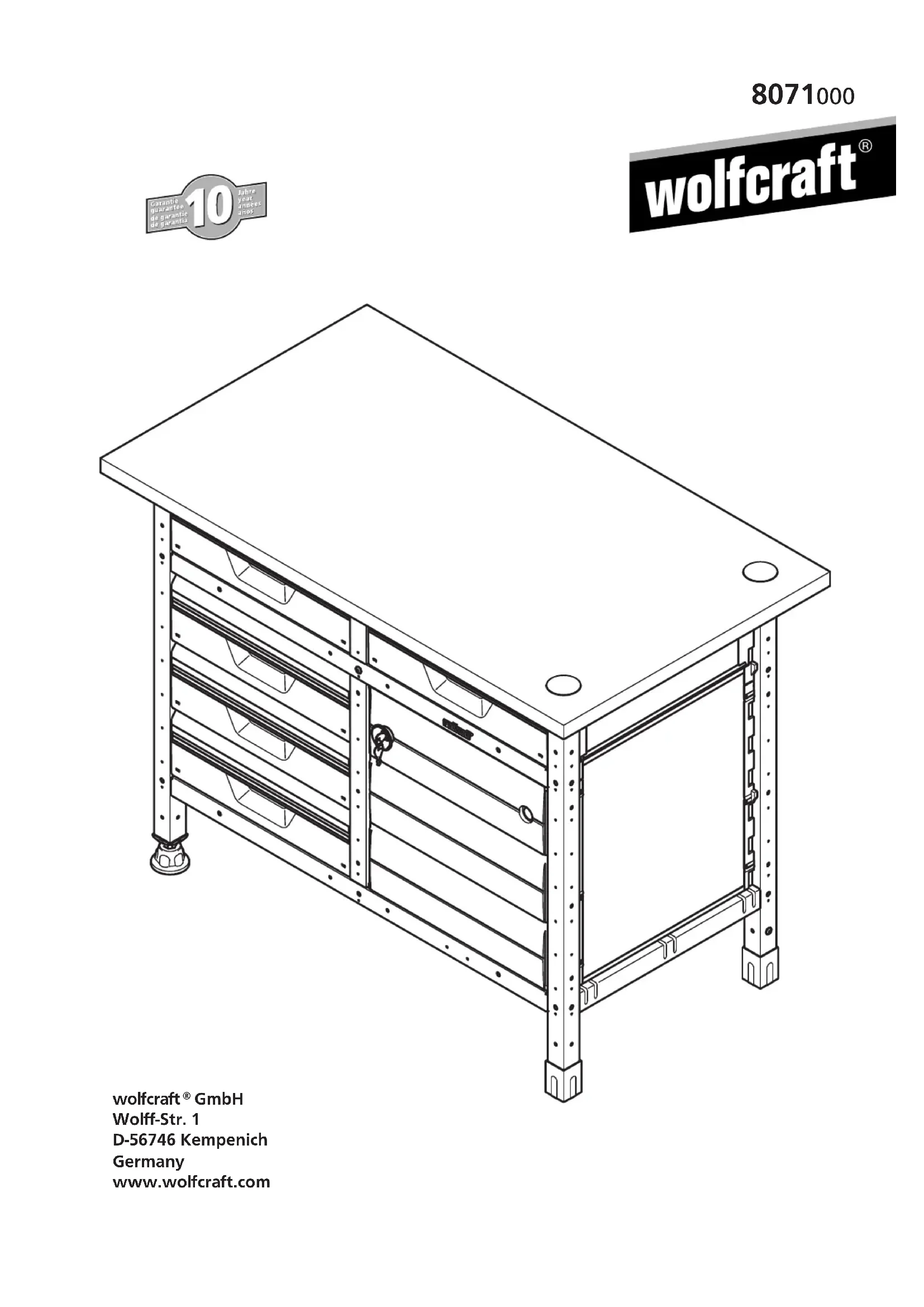 8071000 - Établi de travail WOLFCRAFT - Notice d'utilisation et mode d'emploi gratuit