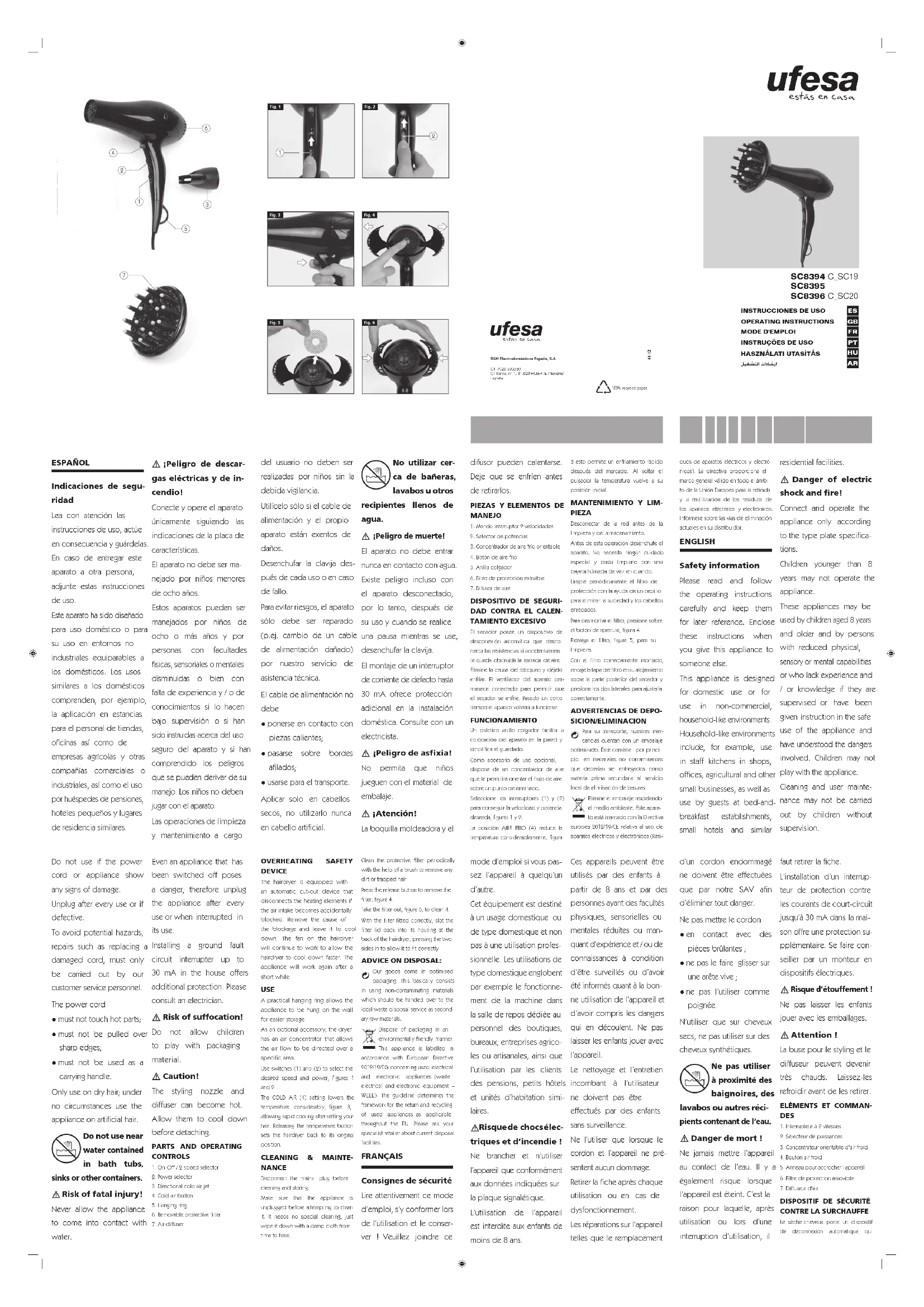 SC8395 - Sèche-cheveux UFESA - Notice d'utilisation et mode d'emploi gratuit