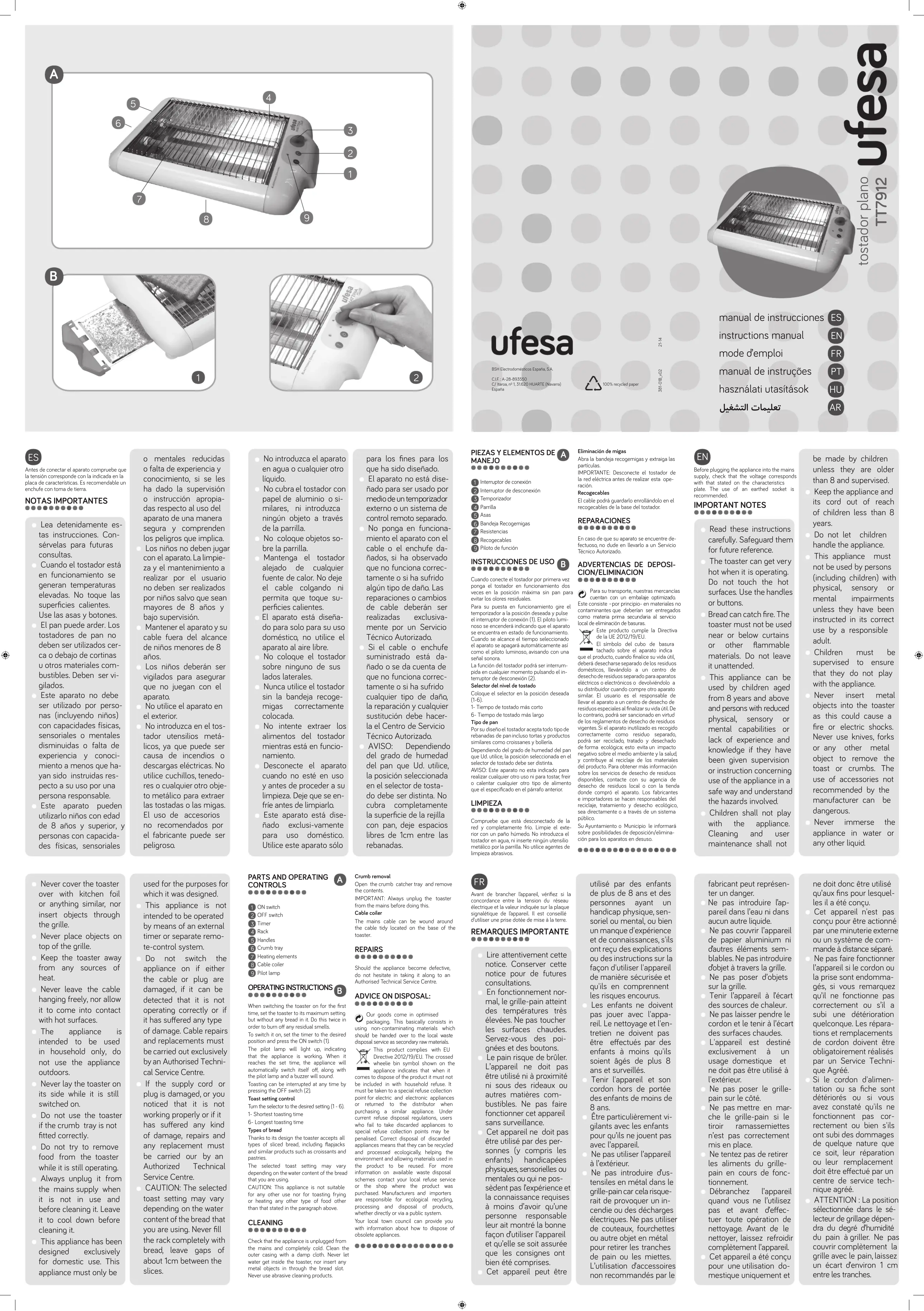 TT7912 - Grille pain UFESA - Notice d'utilisation et mode d'emploi gratuit