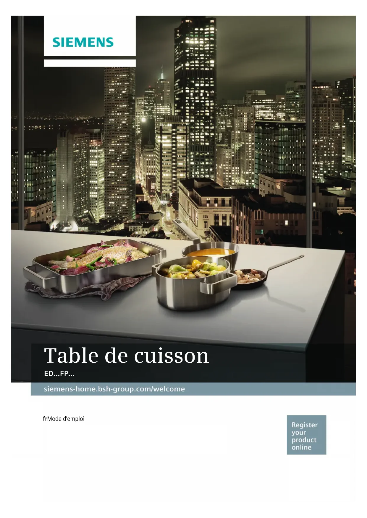 - Présentation de l'appareil . . . . . . . . . . . . . . . . . . 9 Le bandeau de commande . . . . . . . . . . . . . . . . . . . . . 9 Les foyers. . . . . . . . . . . . . . . . . . . . . . . . . . . . . . . . . . . 9 Indicateur de chaleur résiduelle . . . . . . . . . . . . . . . . . 10 1 Utilisation de l’appareil . . . . . . . . . . . . . . . . . . . 10 Allumer et éteindre la table de cuisson . . . . . . . . . . . 10 Régler la zone de cuisson . . . . . . . . . . . . . . . . . . . . . 10 Conseils de cuisson. . . . . . . . . . . . . . . . . . . . . . . . . .11 w Zone combinée. . . . . . . . . . . . . . . . . . . . . . . . . . 14 Indications concernant les ustensiles. . . . . . . . . . . . . 14 Activer . . . . . . . . . . . . . . . . . . . . . . . . . . . . . . . . . . . .14 Désactiver . . . . . . . . . . . . . . . . . . . . . . . . . . . . . . . . . 14 u Fonction Move . . . . . . . . . . . . . . . . . . . . . . . . . . 14 Conseils pour l'utilisation de récipients . . . . . . . . . . . 14 Activer . . . . . . . . . . . . . . . . . . . . . . . . . . . . . . . . . . . .15 Désactiver . . . . . . . . . . . . . . . . . . . . . . . . . . . . . . . . . 15 O Fonctions temps . . . . . . . . . . . . . . . . . . . . . . . . 15 Programmation du temps de cuisson . . . . . . . . . . . . 15 Le minuteur . . . . . . . . . . . . . . . . . . . . . . . . . . . . . . . . 16 v Fonction PowerBoost . . . . . . . . . . . . . . . . . . . . 16 Activer . . . . . . . . . . . . . . . . . . . . . . . . . . . . . . . . . . . .16 Désactiver . . . . . . . . . . . . . . . . . . . . . . . . . . . . . . . . . 16 A Sécurité-enfants. . . . . . . . . . . . . . . . . . . . . . . . . 17 Activer et désactiver la sécurité-enfants . . . . . . . . . . . 17 Sécurité-enfants automatique . . . . . . . . . . . . . . . . . . . 17 k Anti-effacement . . . . . . . . . . . . . . . . . . . . . . . . . 17 b Coupure de sécurité automatique . . . . . . . . . . 17 Q Réglages de base. . . . . . . . . . . . . . . . . . . . . . . . 18 Pour accéder aux réglages de base : . . . . . . . . . . . . 19 [ Indication de la consommation d'énergie . . . . 20 t Test des récipients. . . . . . . . . . . . . . . . . . . . . . . 20 h Power-Manager . . . . . . . . . . . . . . . . . . . . . . . . . 21 D Nettoyage . . . . . . . . . . . . . . . . . . . . . . . . . . . . . . 21 Plaque de cuisson . . . . . . . . . . . . . . . . . . . . . . . . . . .21 Cadre de la table de cuisson . . . . . . . . . . . . . . . . . . .22 { Questions fréquentes et réponses (FAQ) . . . . 22 3 Anomalies, que faire ?. . . . . . . . . . . . . . . . . . . . 24 4 Service après-vente . . . . . . . . . . . . . . . . . . . . . . 25 Numéro E et numéro FD . . . . . . . . . . . . . . . . . . . . . .25 E Plats tests . . . . . . . . . . . . . . . . . . . . . . . . . . . . . . 26 Produktinfo Vous trouverez des informations supplementaires concernant les produits, accessoires, pièces de rechange et services sur Internet sous : www.siemens- home.bsh-group.com et la boutique en ligne : www.siemens-home.bsh-group.com/eshopsfr Utilisation conforme