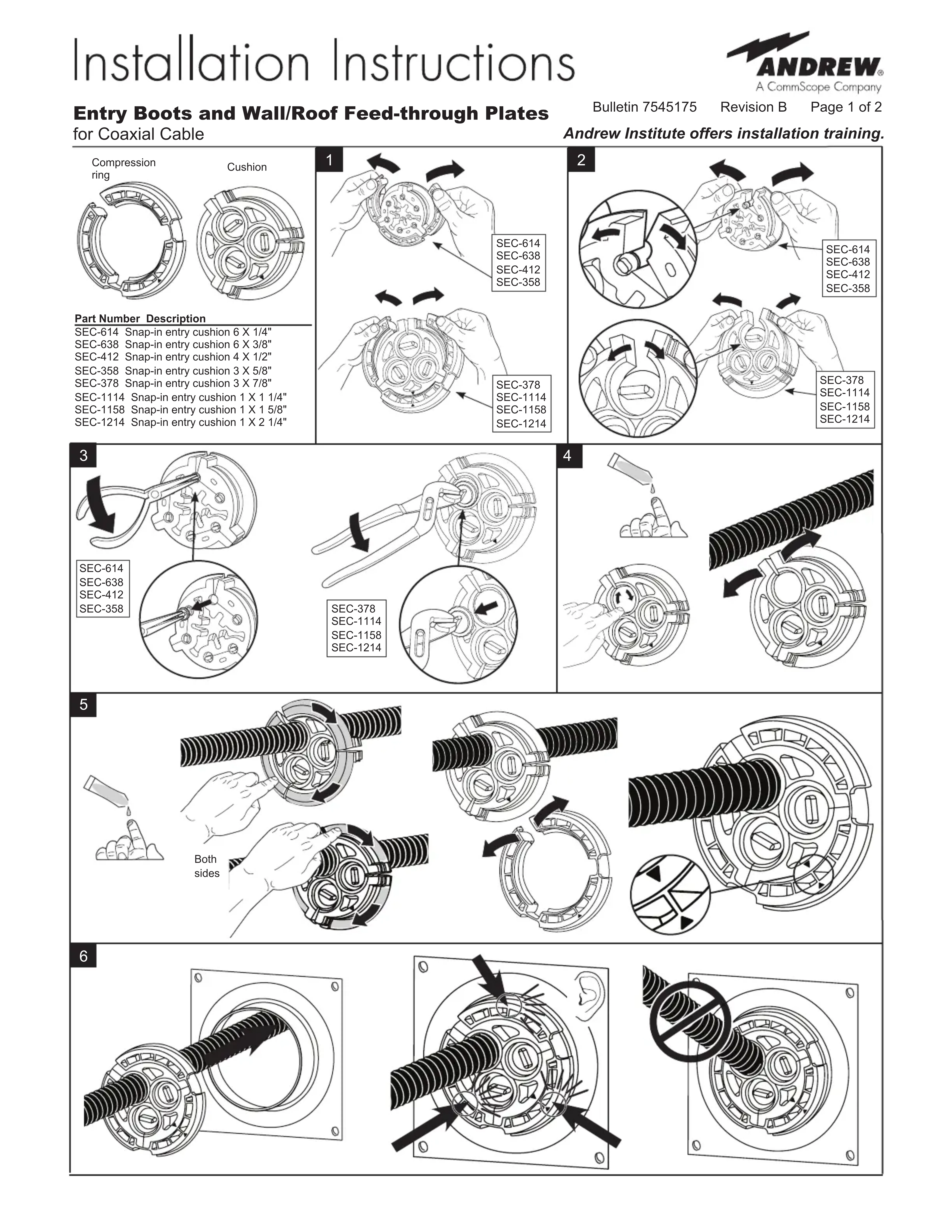 Avis : Andrew décline toute responsabilité pour les conséquences de procédures d'installation, d'inspection, d'entretien ou de retrait incorrectes ou dangereuses.