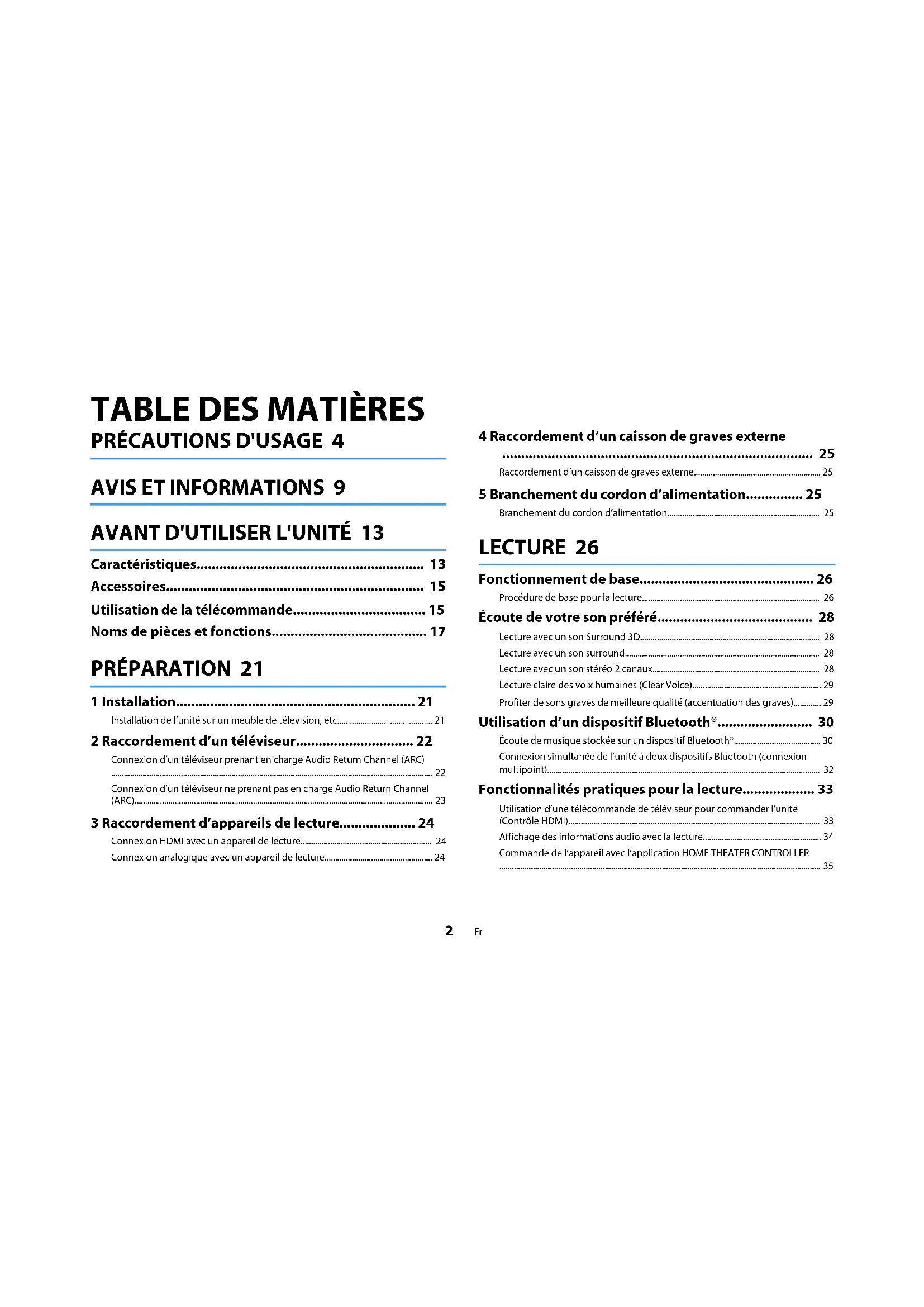 - Connexion HDMI avec un appareil de lecture p. 24