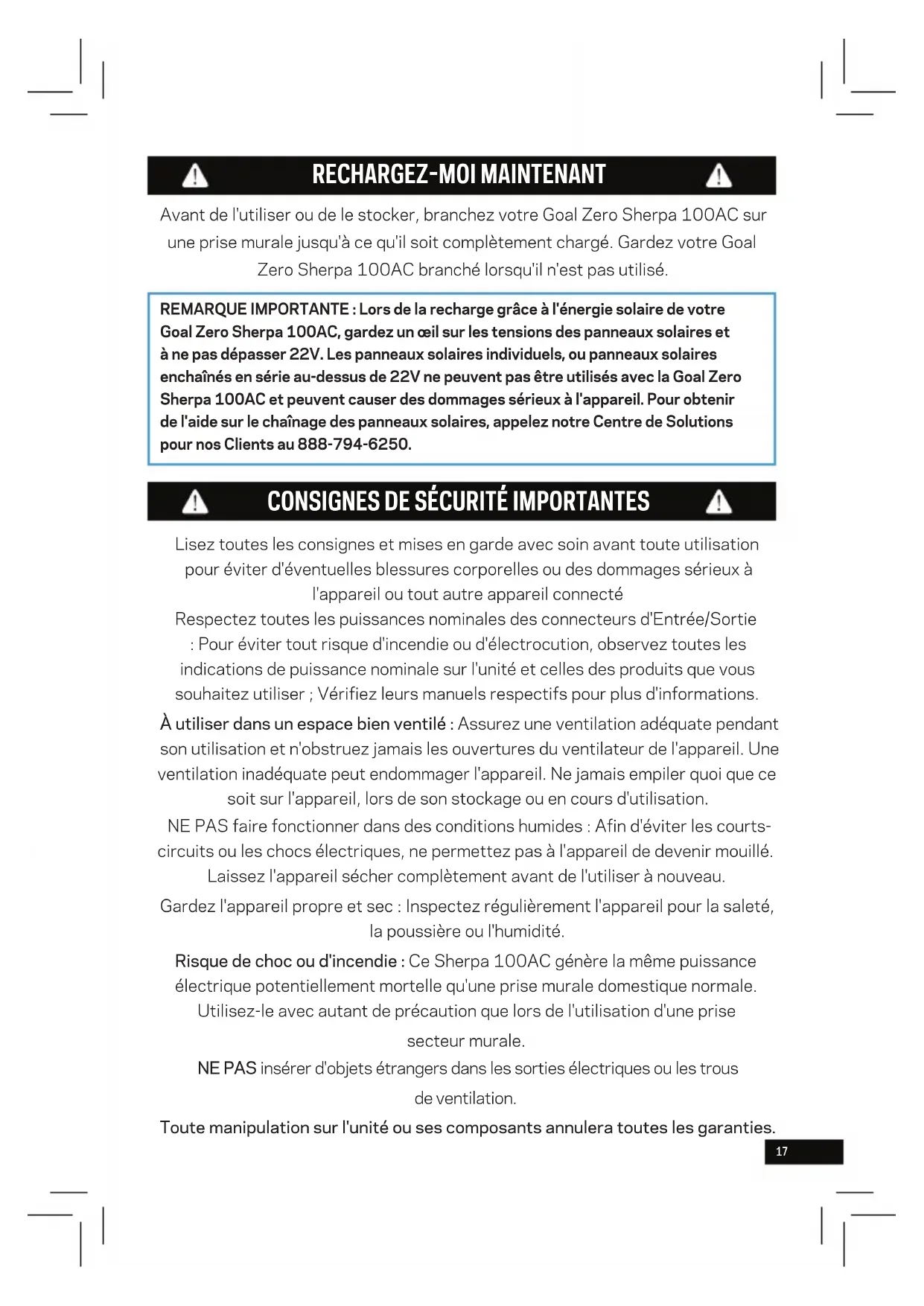 MODE D'EMPLOI Sherpa 100AC GOAL ZERO