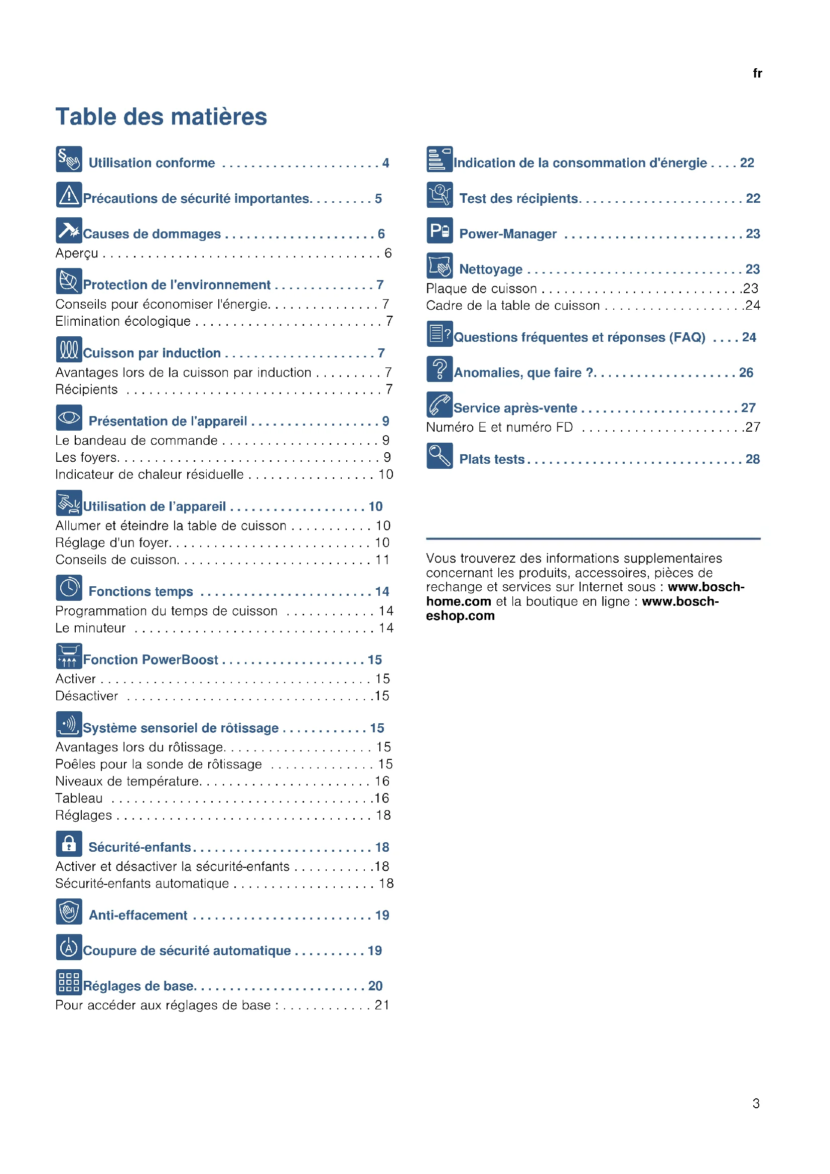 Vous trouverez des informations supplementaires concernant les produits, accessoires, pièces de rechange et services sur Internet sous : www.bosch-home.com et la boutique en ligne : www.bosch-eshop.com