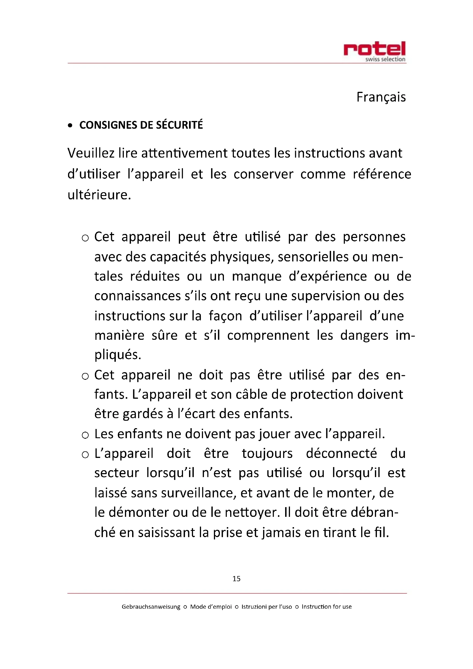 Pour une élimination dans les règles de l'art, veuillez remettre l'appareil à un revendeur, un responsable du service après-vente ou Rotel SA.