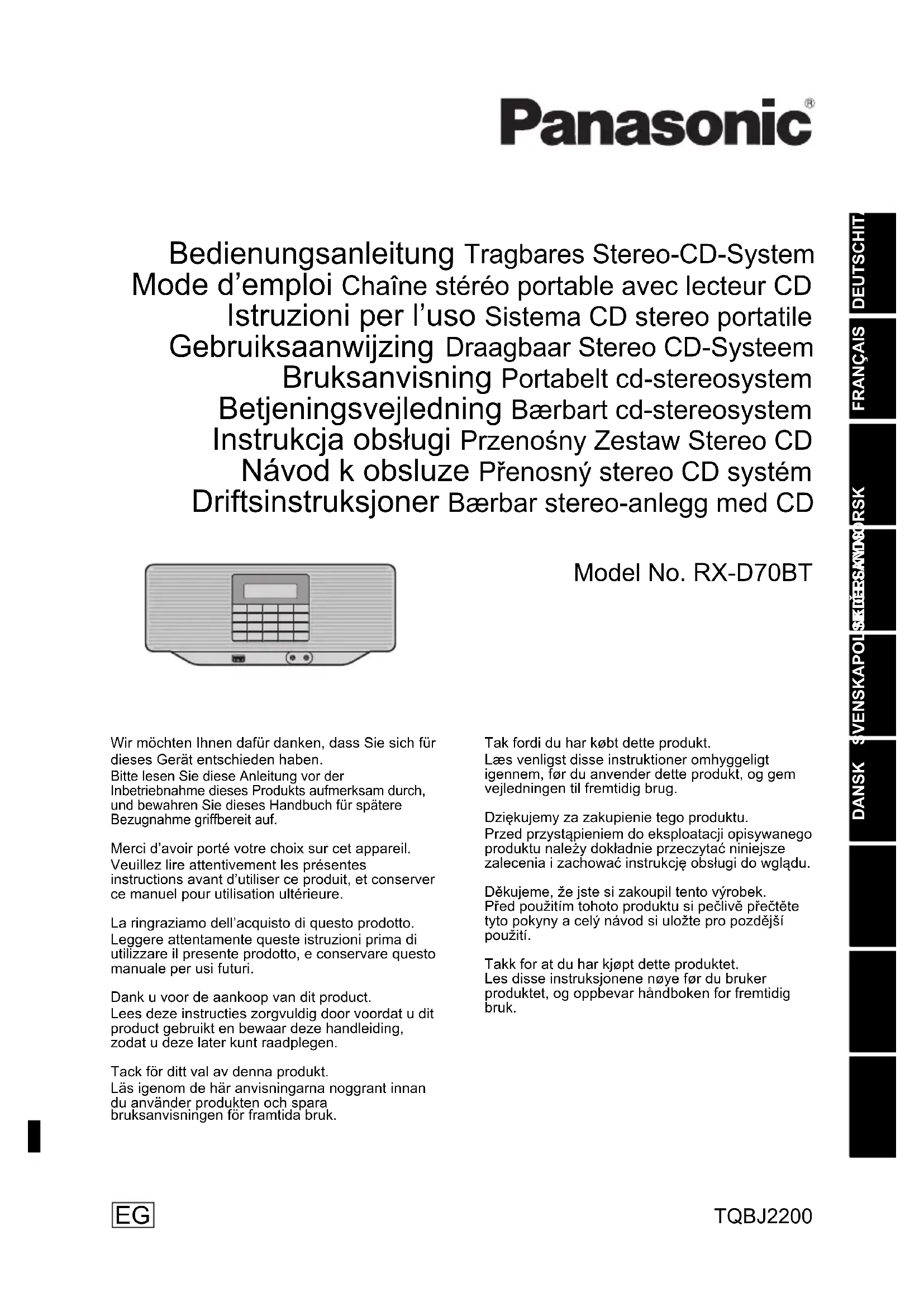 Retrouvez gratuitement la notice de l'appareil RXD70BT PANASONIC au format PDF.