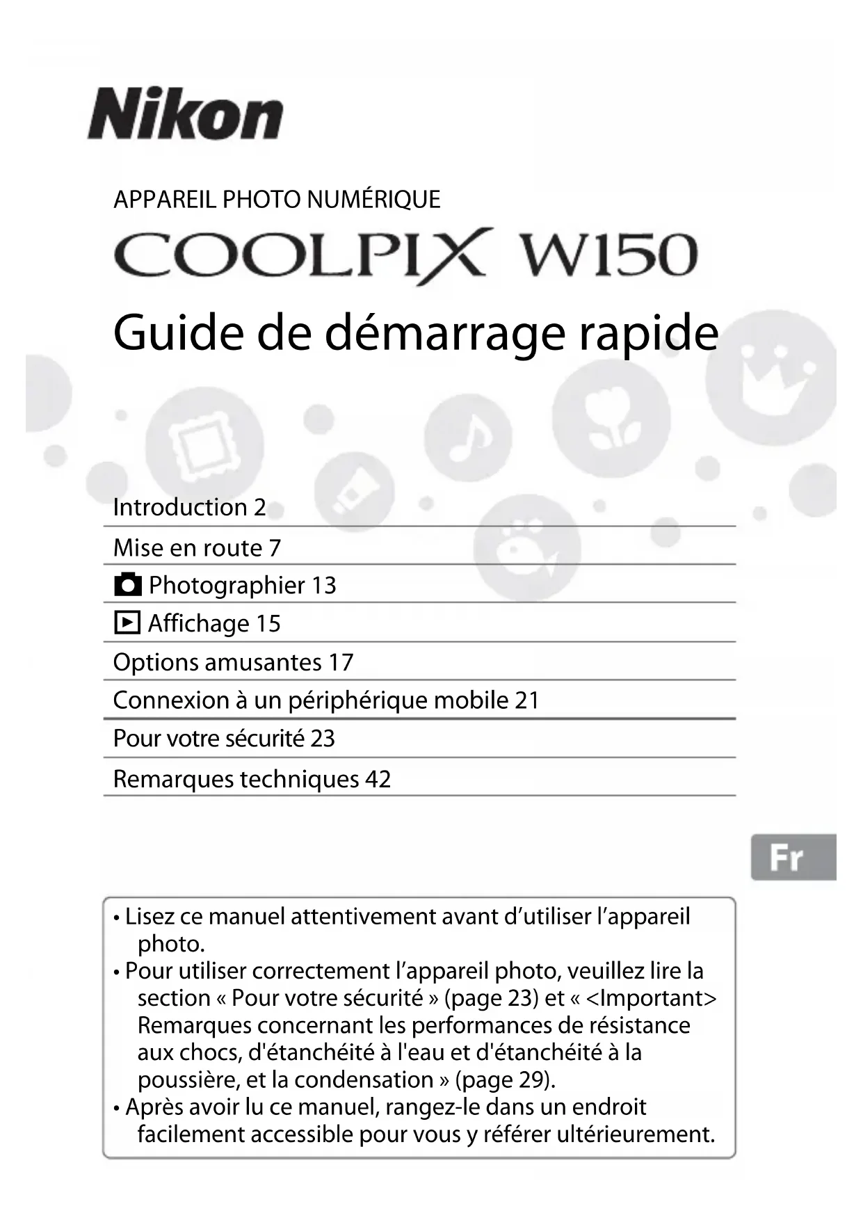Coolpix W150 - Appareil photo NIKON - Notice d'utilisation et mode d'emploi gratuit