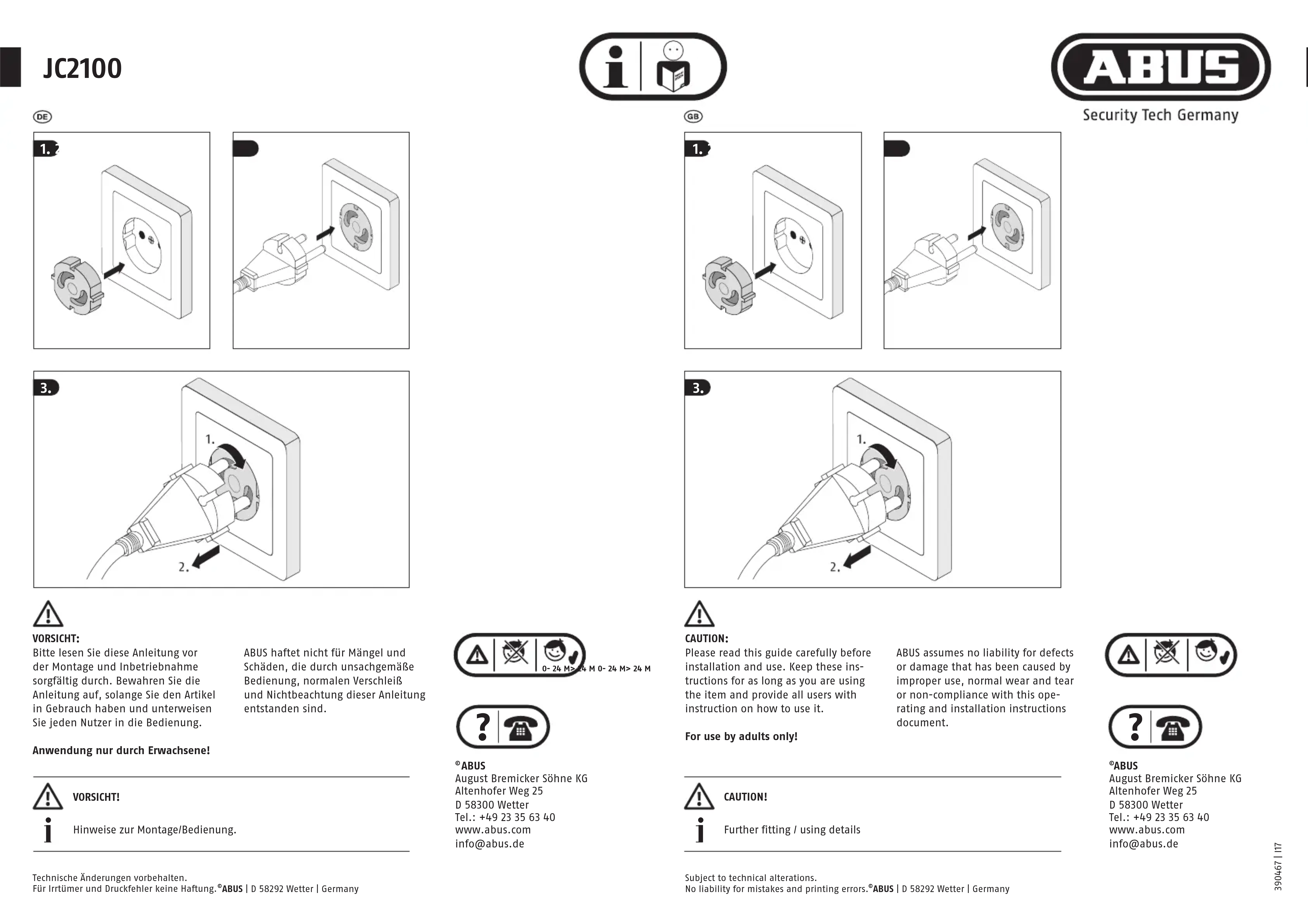 JC2100 - Prise électrique ABUS - Notice d'utilisation et mode d'emploi gratuit