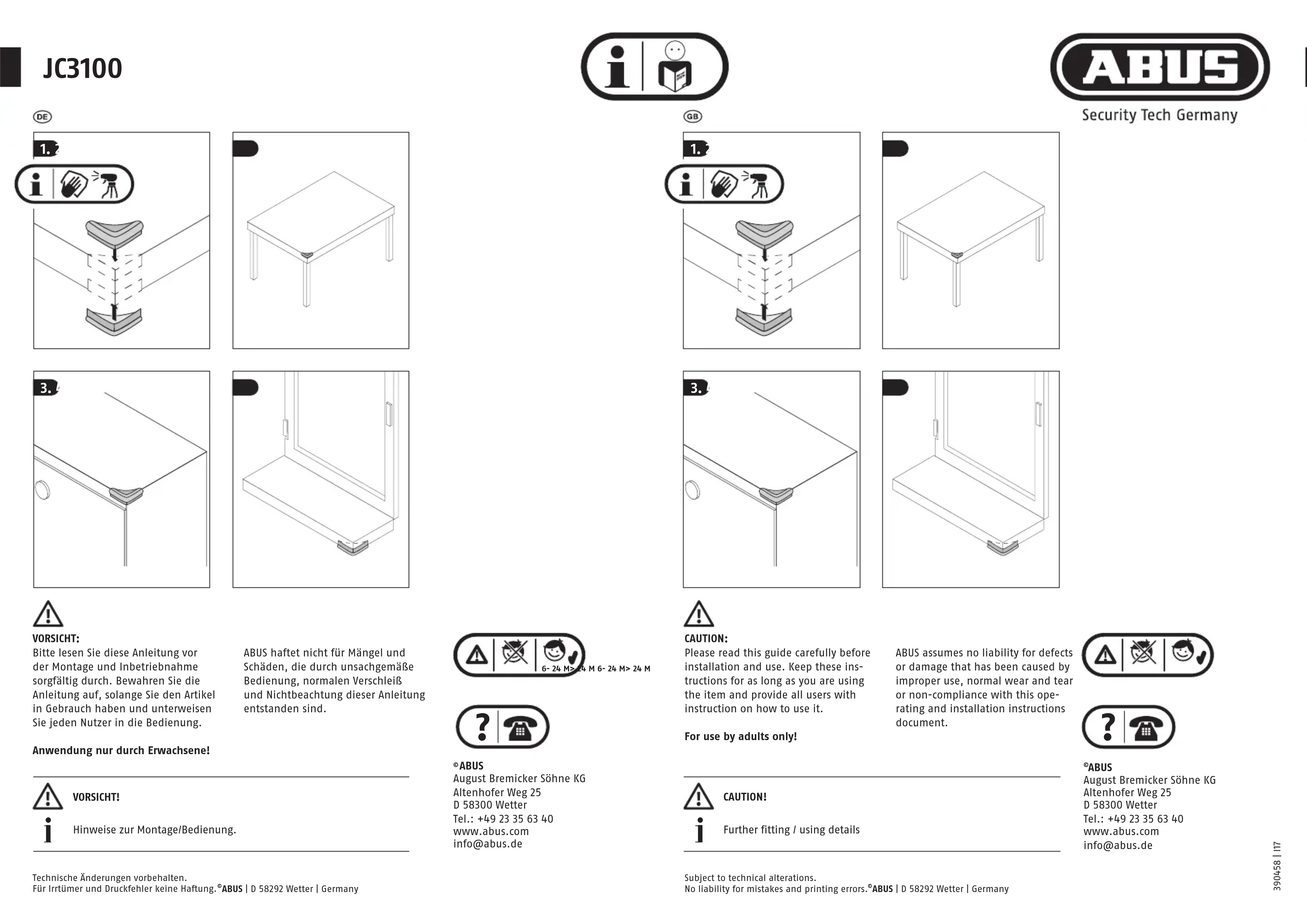 JC3100 - Protection d'angle de meuble ABUS - Notice d'utilisation et mode d'emploi gratuit