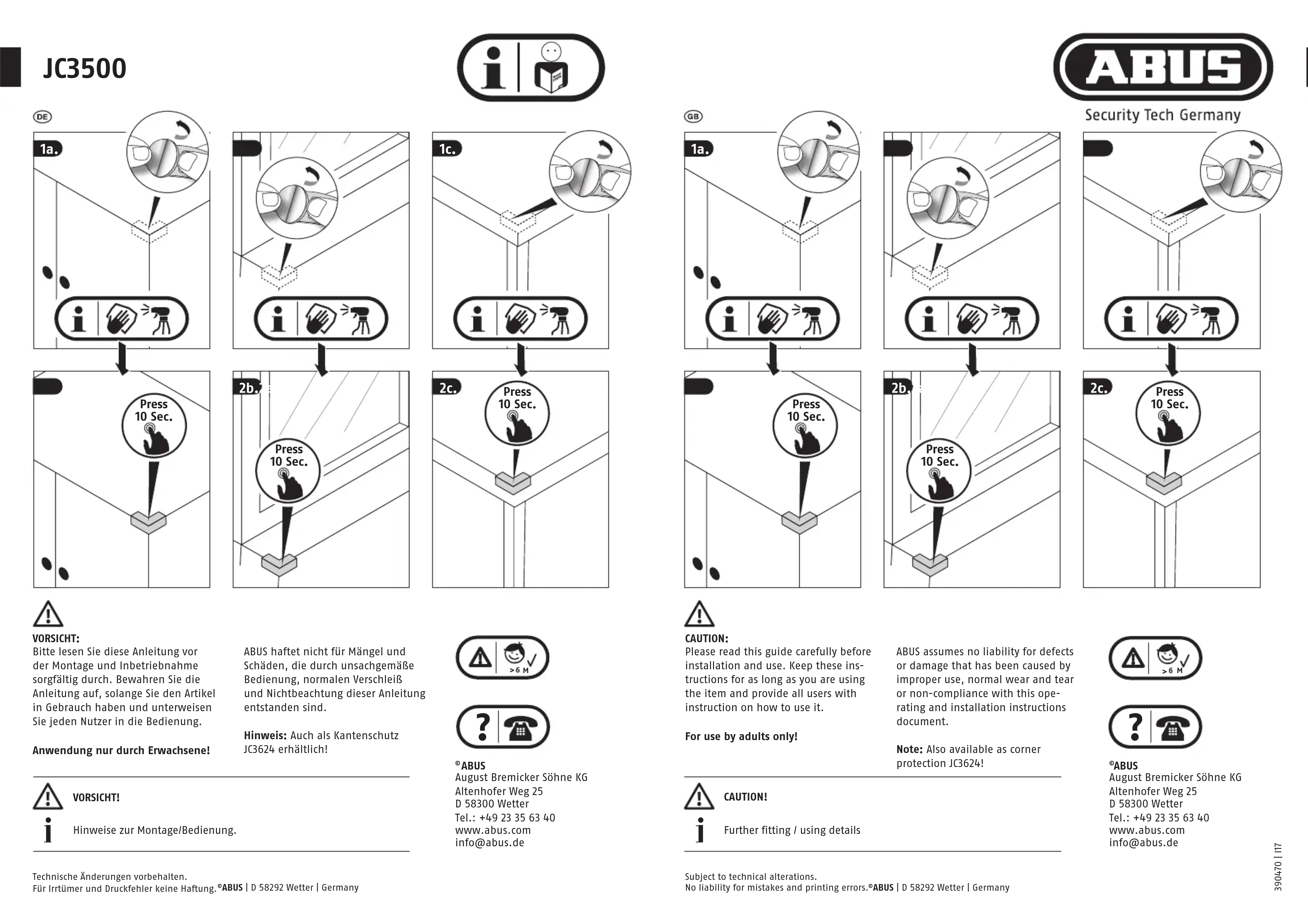 Retrouvez gratuitement la notice de l'appareil JC3500 ABUS au format PDF.