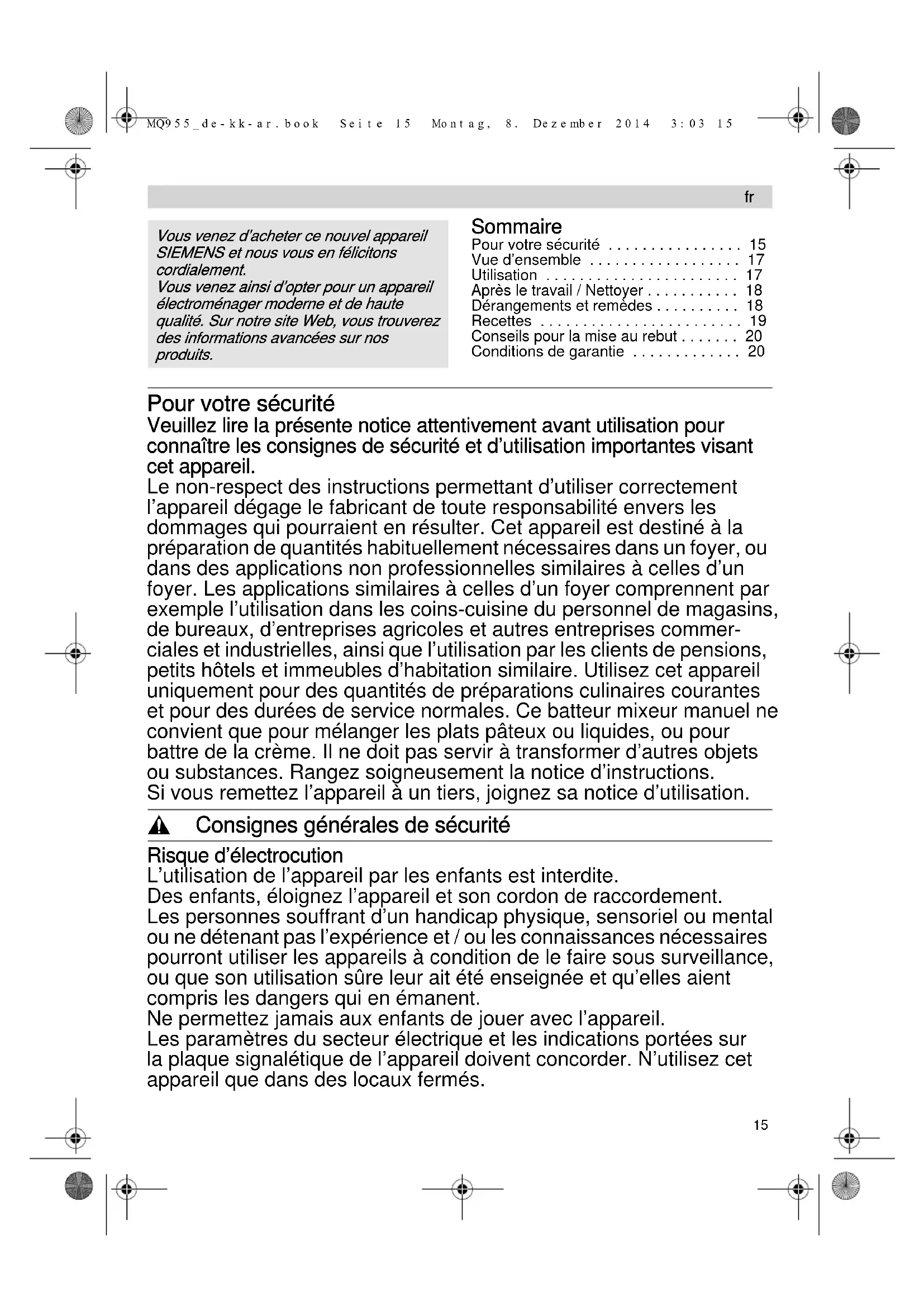 MQ95530N - Robot ménager SIEMENS - Notice d'utilisation et mode d'emploi gratuit