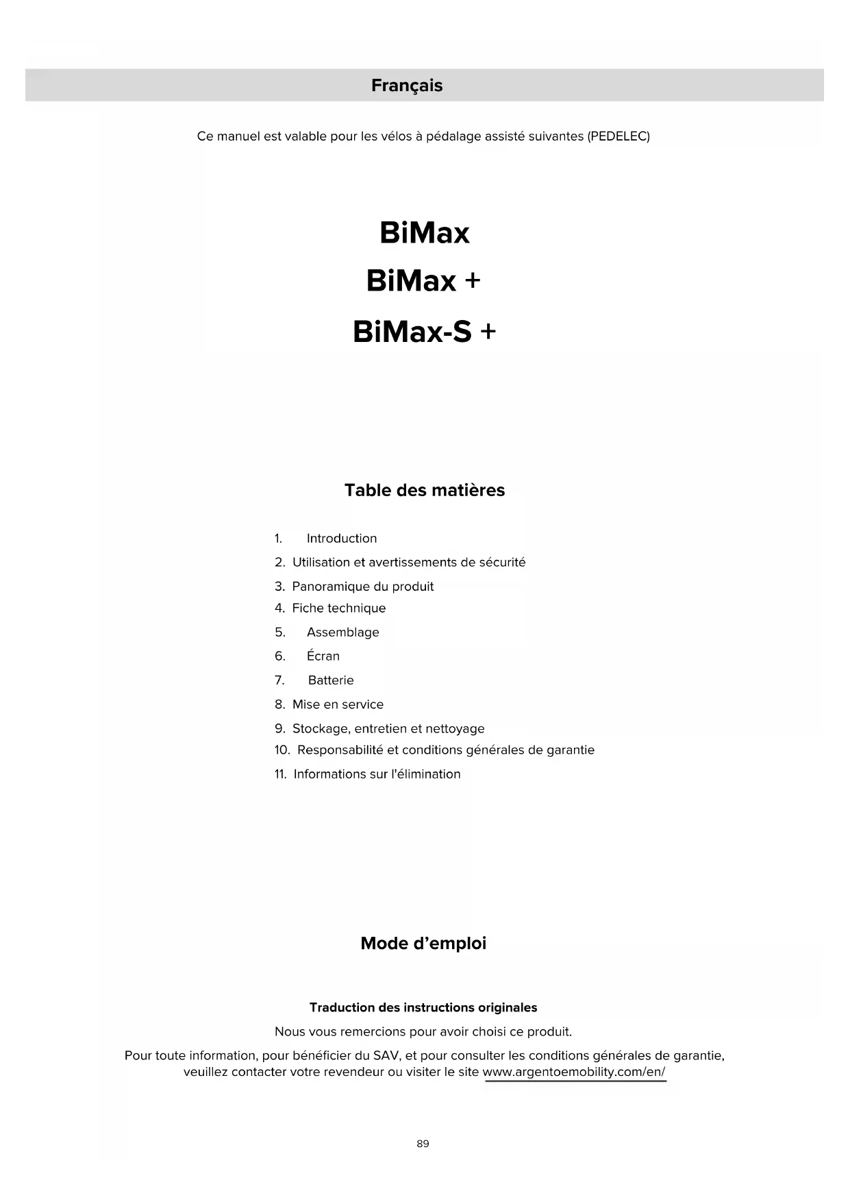 Bi Max - Vélo électrique Argento - Notice d'utilisation et mode d'emploi gratuit