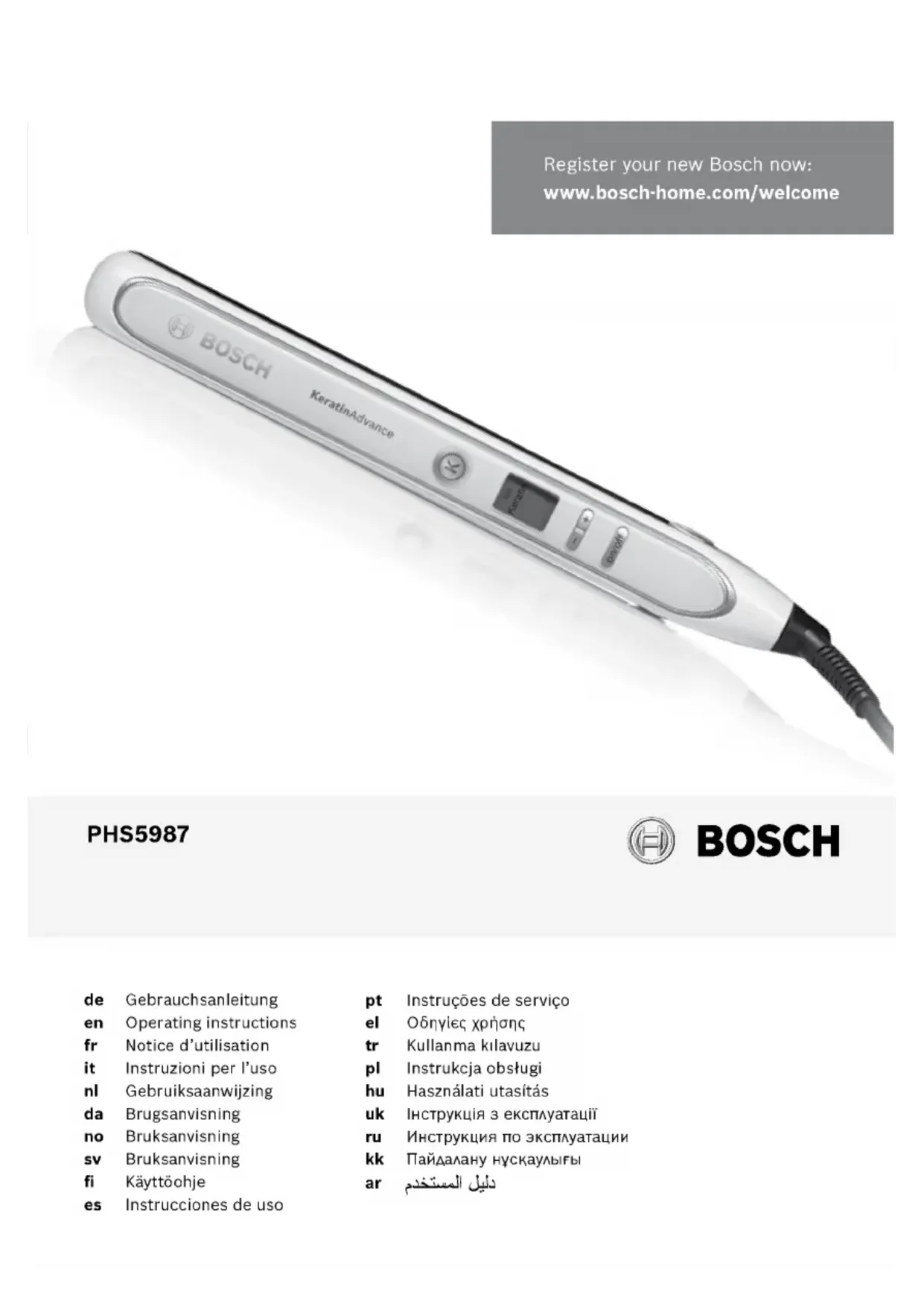 Retrouvez gratuitement la notice de l'appareil Keratin Advance PHS5987S BOSCH au format PDF.