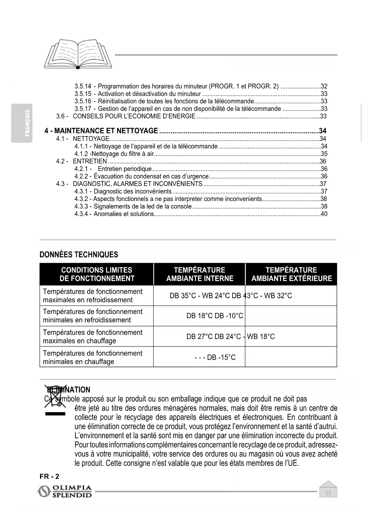 4.1.1 - Nettoyage de l’appareil et de la télécommande .............................................................34